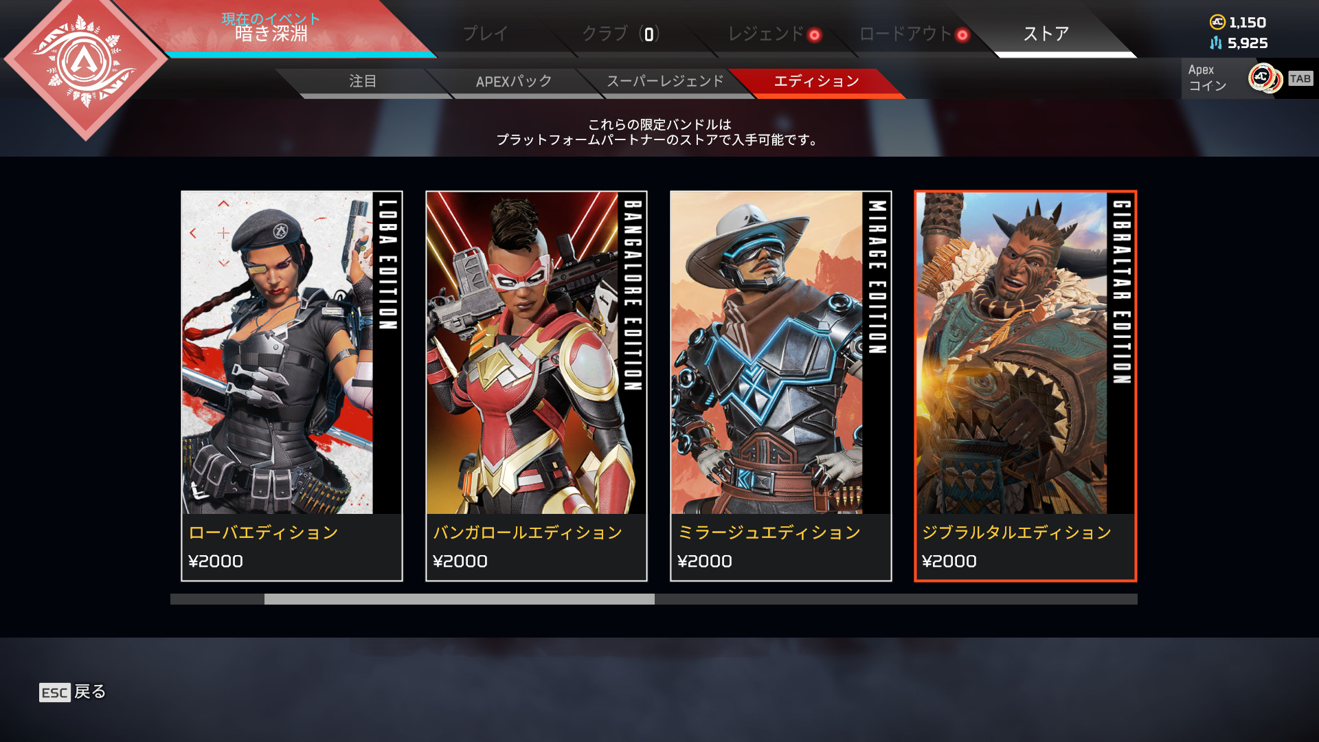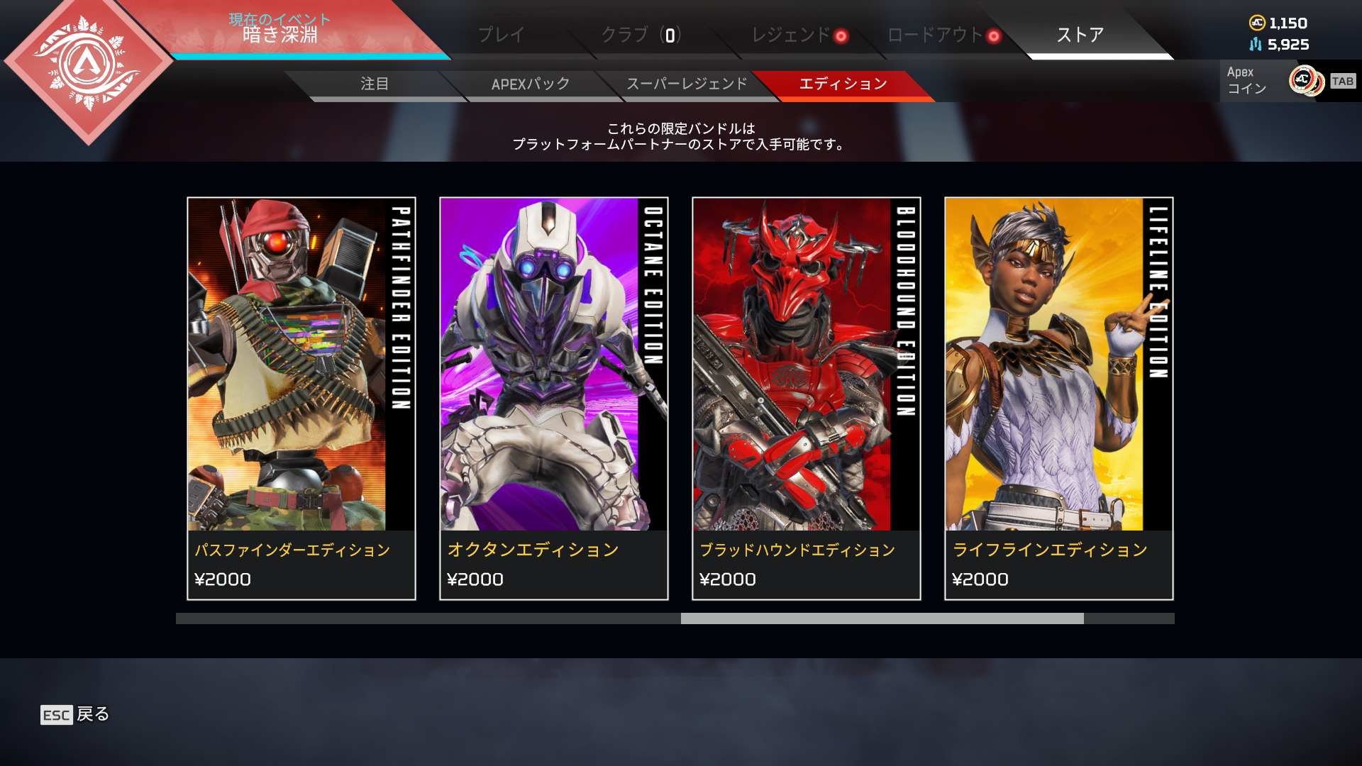 各エディションにはレジェンダリースキンや武器、チャームやバナーフレーム、バッジ、1000APEXコインを収録!今すぐストアタブでチェックしよう!