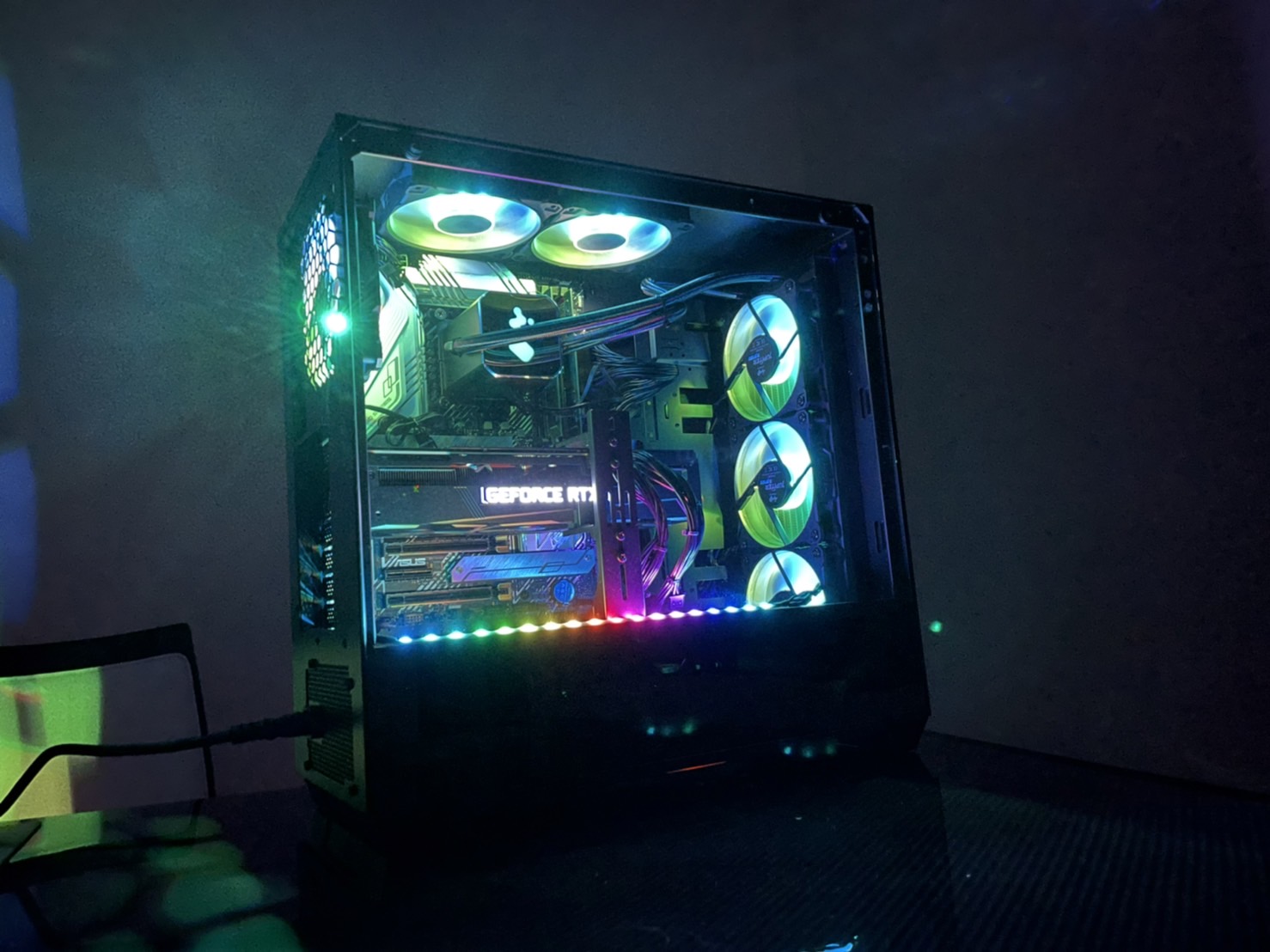 パソコンケースのサイドパネルは強化ガラスで透明なので、各パーツのライティングエフェクトを外から見ることができます。