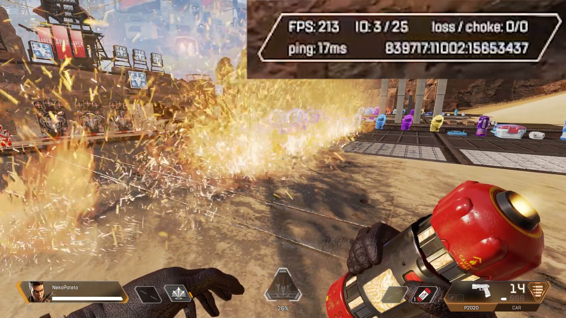 このゲーミングPCは性能が非常に高く、エーペックスでは基本的に「144FPS」を下回ることはありませんでした。