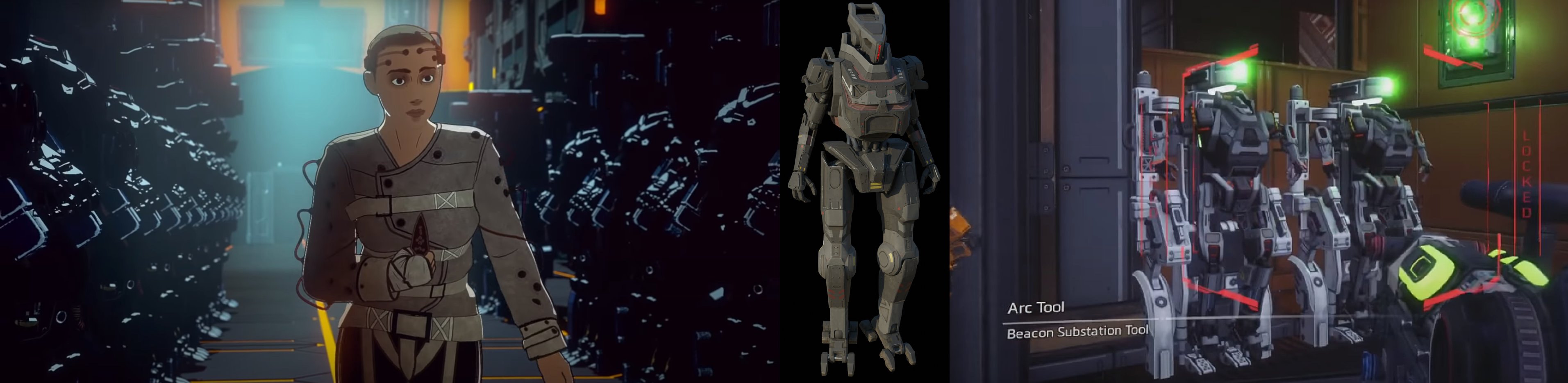 一番左はレイスの過去ムービーのキャプチャ。真ん中がロボットの「HDモデル」。一番右がタイタンフォール2で登場した「ストーカー」の画像。