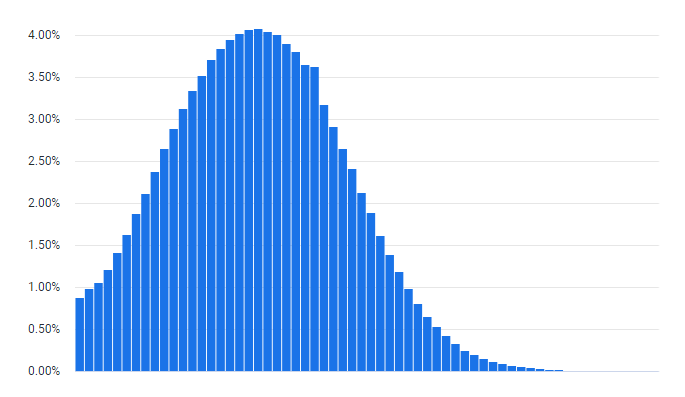 - 自分がスキル分布の上位にいる場合、どんなプレイヤーとマッチングすることになっても、ほとんどのチームメイトは自分より劣っているはずです。これは、分布の一番端は人口が少なく、このゾーンでのマッチメイキングはとても長いマッチメイキング時間、とても大きなスキルギャップ、またはその中間の状況(これが理想的なケースです)が必要となってくるからです。分布の底辺にいるプレイヤーも同様で、この部分のスキル分布も他の部分より人口が少なくなっています。