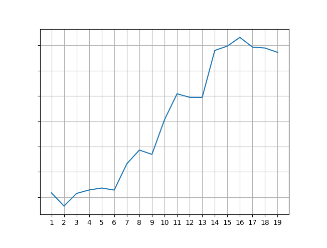 X軸: マッチプレイ数。Y軸: スキルレートこの例でのプレイヤーのスキルは当初、実際のスキルレベルよりはるかに低く測定されているため、この例は少し大げさになっています。実際のスキルレベルがわかると、アルゴリズムはすぐに調整し、平準化されます。