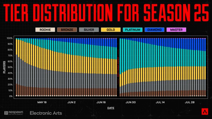 このテストは、マスター帯(上位750名のApexプレデターを含む)とプラチナ帯以下のプレイヤーがマッチングしないようにする試みの2回目でした。