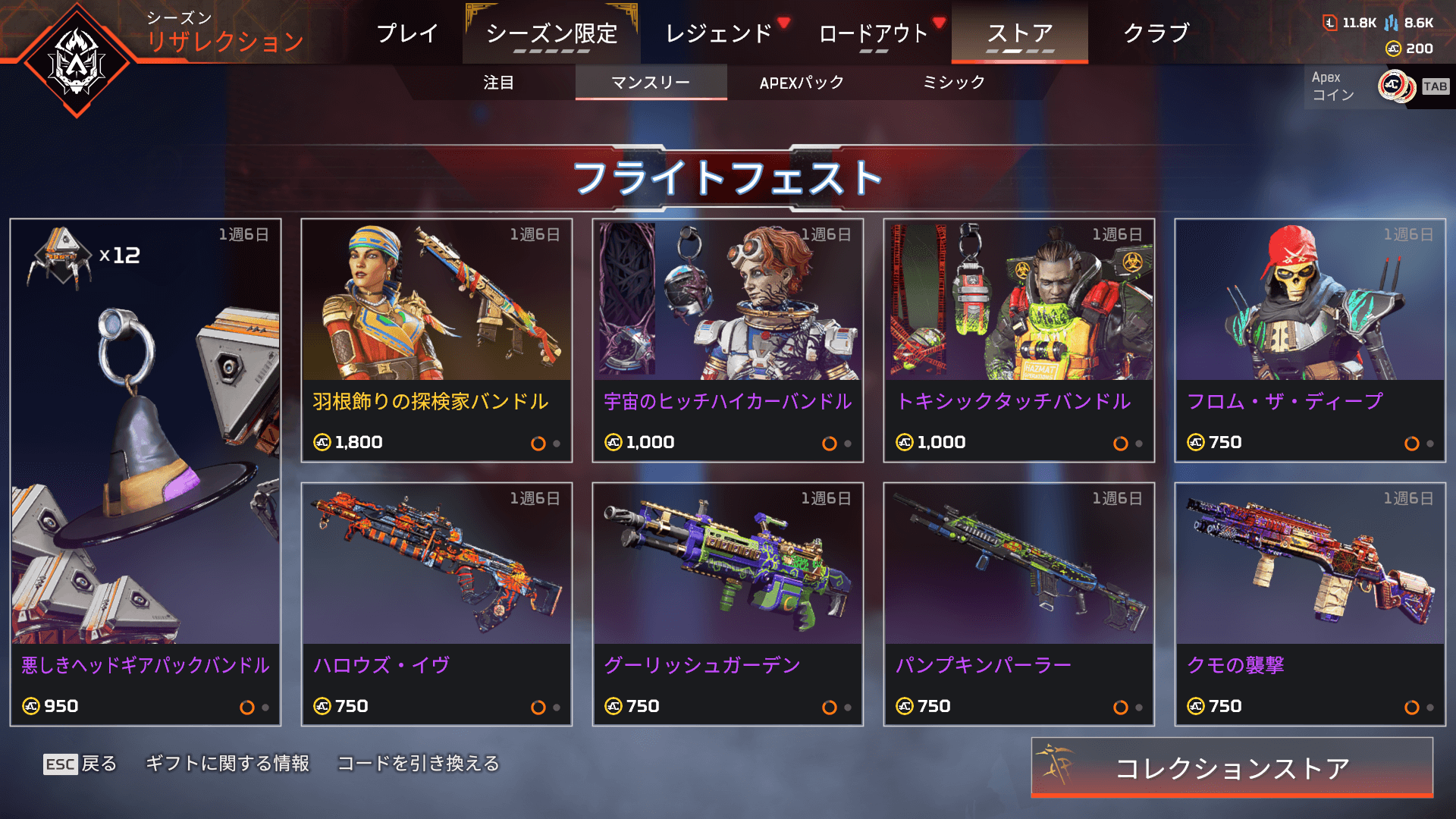 表記が「マンスリーストア」ではなく「フライトフェスト」になっていますが恐らくバグです。