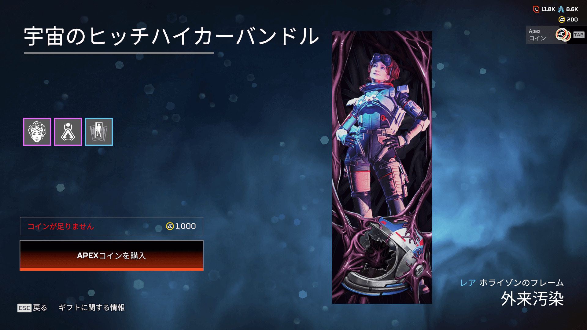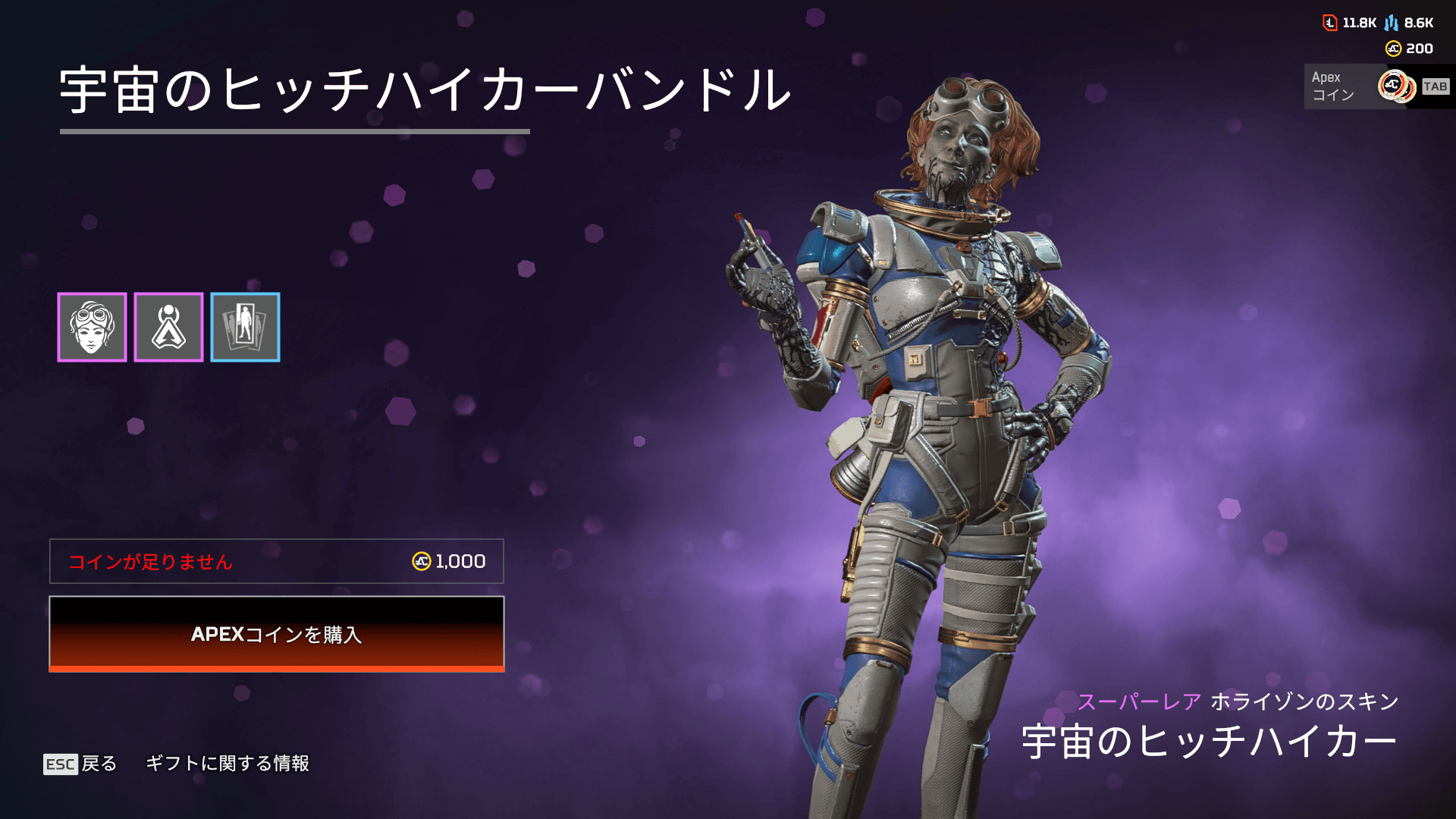 - ホライゾンのスキン「宇宙のヒッチハイカー」