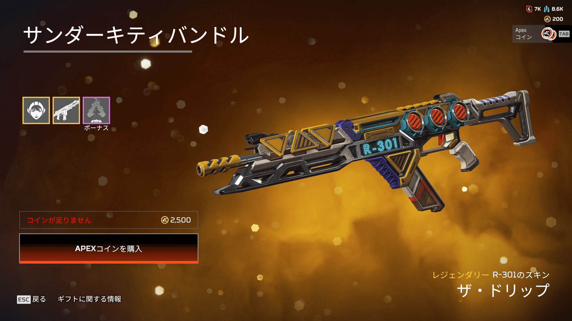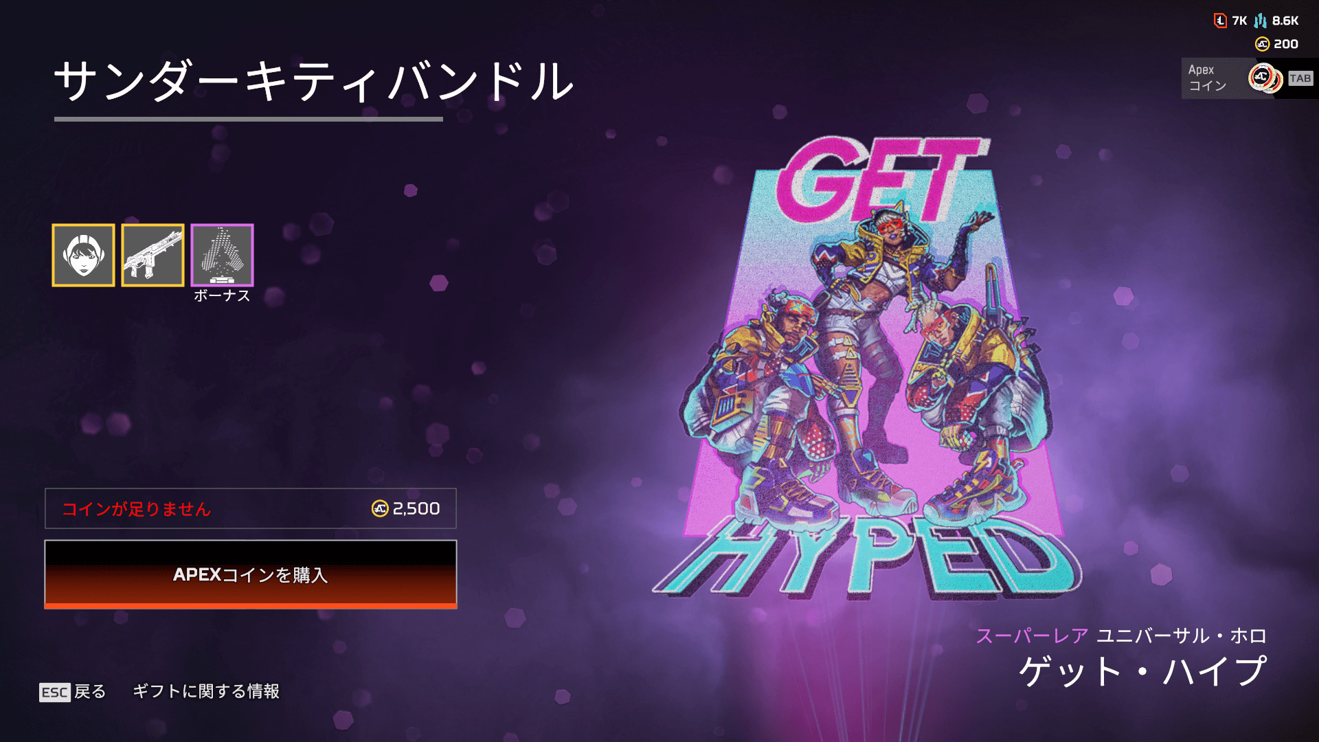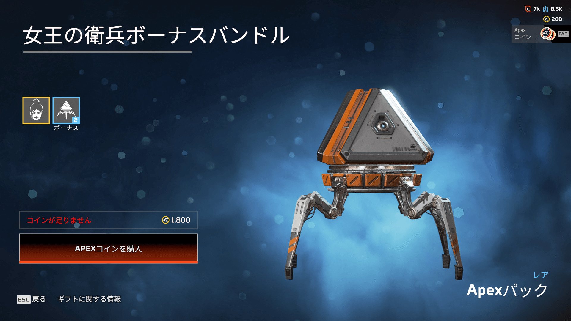 - 「シーズン限定」→「イベントオファー」から「バイオニック・ガードバンドル」と「ナイトキャットバンドル」を購入すると、900APEXコイン分お得になります。