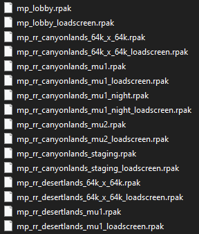 これらは現在ゲームファイル内にあるマップファイルの「.rpak」です。