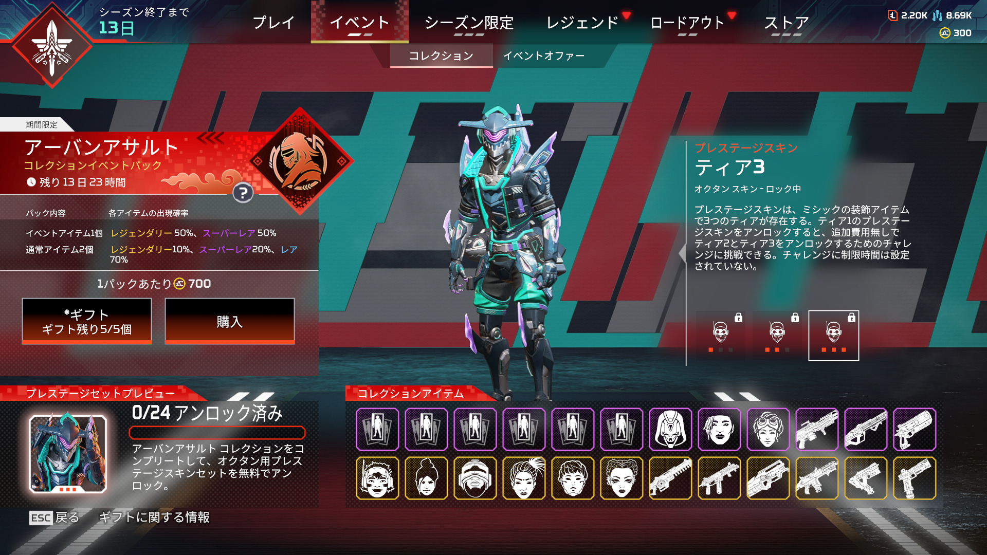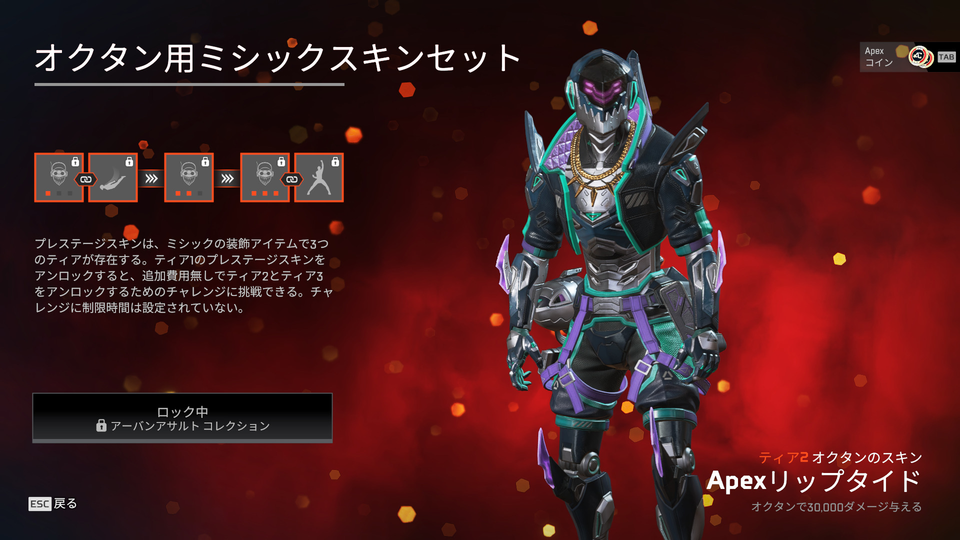 最新情報【APEX】本日登場したオクタンのミシックスキン「Apexリップタイド」のゲーム内見た目 2024年4月24日 2024年4月24日最新記事 【APEX】シア&オクタンのレジェンダリースキンがシーズン28バトルパス実装(シアさんピック率ワースト3位だけど) 【APEX】2026年2月22日京王アリーナでDREAM MATCH APEX開催!! 【APEX】11.19リカラーストアアップデート情報 【APEX】11.19スーパーソニックイベント&アップデート情報 【APEX】ワールドエッジが時期シーズンアップデート!!(リーク) 【APEX】本日登場したオクタンのミシックスキン「Apexリップタイド」のゲーム内見た目アーバンアサルトコレクションイベントが開始され、オクタンのミシックスキンが新登場しました。【ゲーム内の見た目】イベントページイベント情報【APEX】アーバンアサルトコレクションイベントが4月24日に開催!オクタンのプレステージスキンや、トーナメントシステム、スリーストライク復刻など最新情報【APEX】アーバンアサルトコレクションイベントが4月24日に開催!オクタンのプレステージスキンや、トーナメントシステム、スリーストライク復刻など【APEX】アーバンアサルトコレクションイベントが4月24日に開催!オクタンのプレステージスキンや、トーナメントシステム、スリーストライク復刻など アーバンアサルト イベントトレーラー レジェンドの皆さん、総力戦が展開されるアーバンアサルトに備えましょう。スリーストライクが復刻。さらに独立したランキ... Facebook Twitter