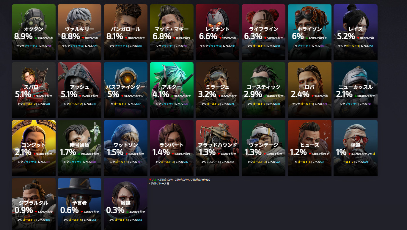 最新情報【APEX】オクタン1位に! 2026年1月8日 2026年1月8日最新記事 【APEX】オクタン1位に! 【APEX】アップデートでどう変わったレジェンドピックレート1.8 【APEX】1.7ストアアップデート リカラー、ファイトフォース、報酬、セレクトパック 【APEX】開発者がアップデートの企画意図を解説『デザイナーノート』が公開されました! 【APEX】ウィンターワイプアウトマイルストーンコレクション開催!単品売りあり オクタン1位にオクタンが、ピックレート1位になりました。記事を作成してポストしたらその間に2位→1位に Facebook Twitter