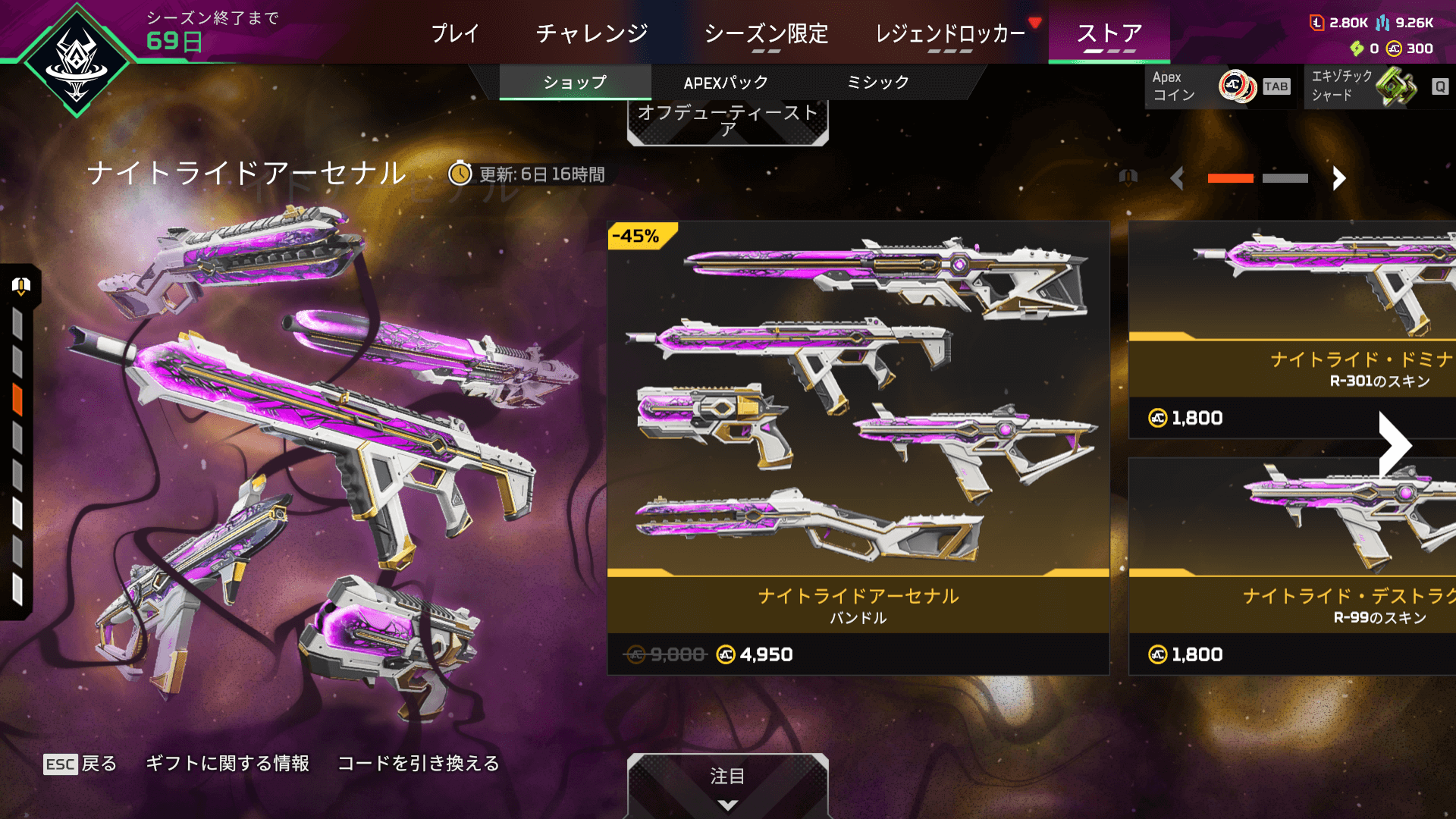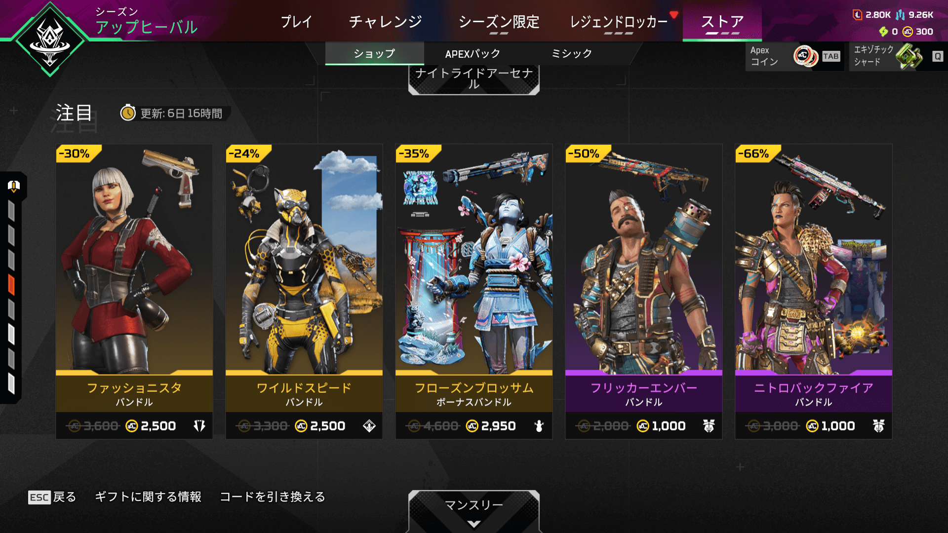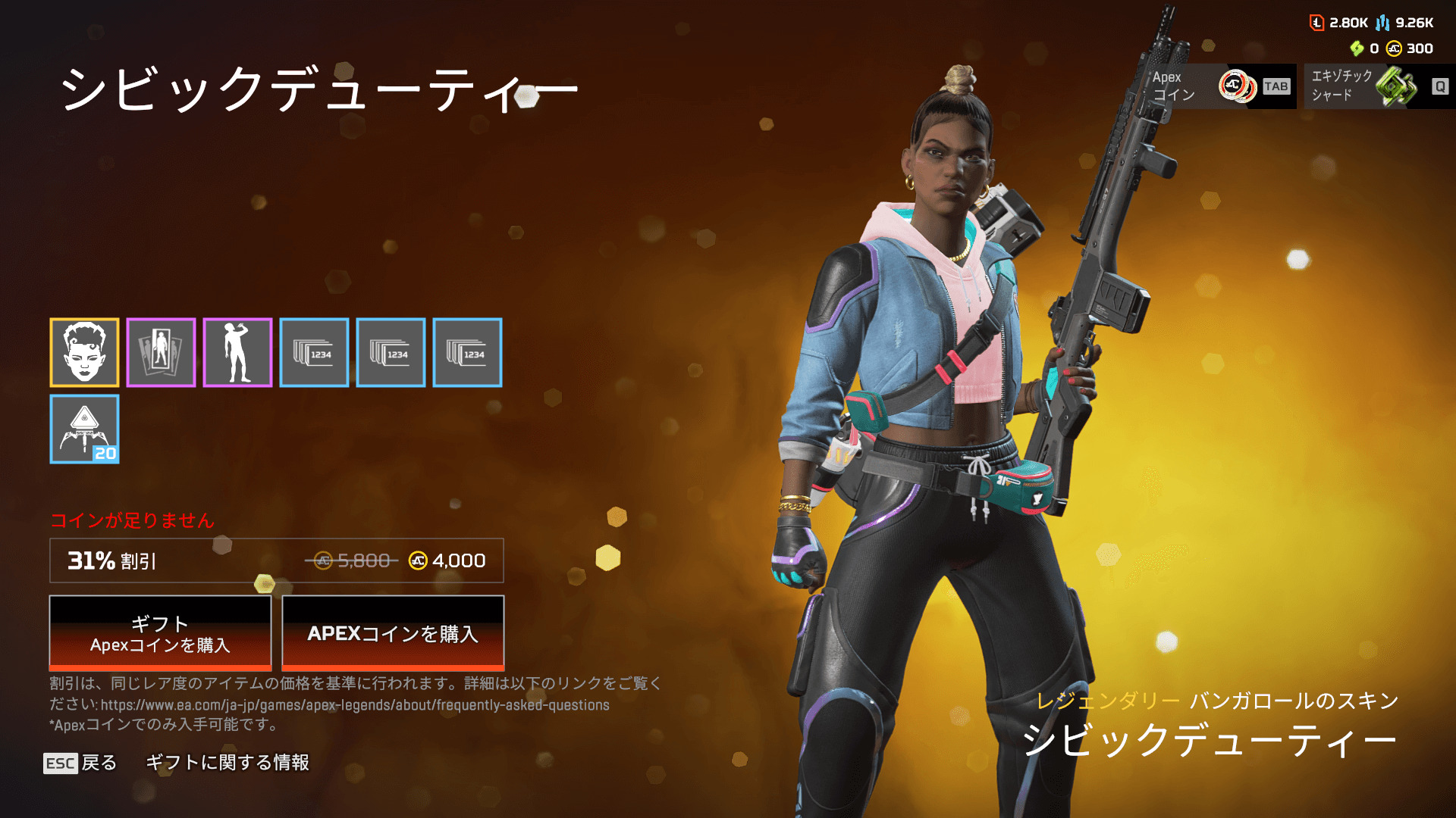 ストア情報【APEXストア情報】オフデューティーストアが開催!「ワットソン」「バンガロール」「ライフライン」の新スキンと新トラッカーが登場【画像あり】 2024年5月29日 2024年5月29日最新記事 【APEX】10.29ストア情報!リカラー更新! 【APEX】シーズン27「Amped」のゲームプレイトレーラーが10月31日AM0時に公開!爽快でスピーディなプレイが! EA「社内AIツールのせいで開発現場が混乱中」従業員が証言。 【APEX】ウインターイベント(シーズン27)のスキン情報 【APEX】札幌はどうしよう?と悩んでいる、そこのあなた!迷ったらGO!7つのおすすめポイント 【APEXストア情報】オフデューティーストアが開催!「ワットソン」「バンガロール」「ライフライン」の新スキンと新トラッカーが登場【画像あり】ストア画面オフデューティーストア他のストア情報新スキンの詳細ワットソン「スタティック・トレーナー」バンガロール「シビックデューティー」ライフライン「ダズリングデニム」最新記事【APEXシーズン21】現在のレジェンドピック率ランキング→「パスファインダー」と「ライフライン」が上位に最新情報【APEXシーズン21】現在のレジェンドピック率ランキング→「パスファインダー」と「ライフライン」が上位に【APEXシーズン21】現在のレジェンドピック率ランキング→「パスファインダー」と「ライフライン」が上位に 第1位: パスファインダー(9.4%) 第2位: ライフライン(8.7%) 第3位: オクタン(8.3%) 第6位: オルター(6.8%) 4位から26位まで 第4位: ブラッドハウンド(7.... Facebook Twitter