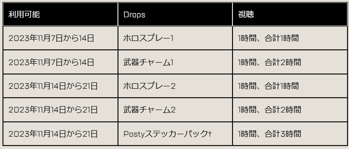 対象アイテムをアンロックするには、EAアカウントをTwitchアカウントと連携させて、以下の期間中にアクセスしてください。EAアカウントを連携させる方法は、こちらからご確認ください。