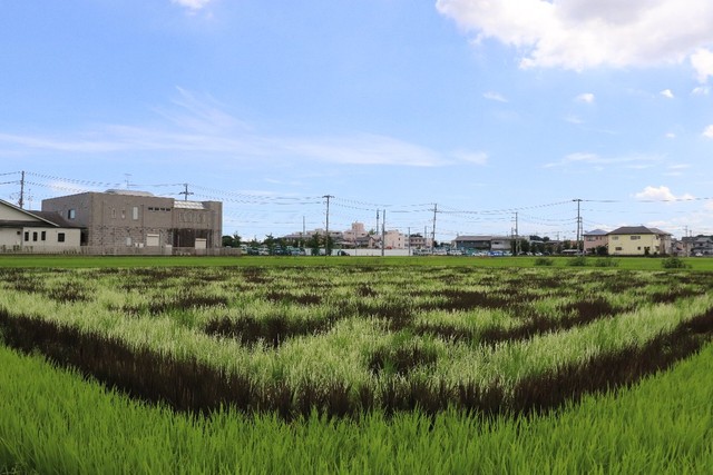 QRコードは約40メートル四方の大きさ。田んぼに隣接する同市の東埼玉資源環境組合・REUSE(リユース)第一工場展望台から一望でき、実際にスマホで読み取れる。関係者によると、日本でQRコードをモチーフにした田んぼアートが作られるのは初。6月12日に約50人の関係者、ボランティアによって田植えが行われ、稲の成長とともにQRコードが浮かび上がった。