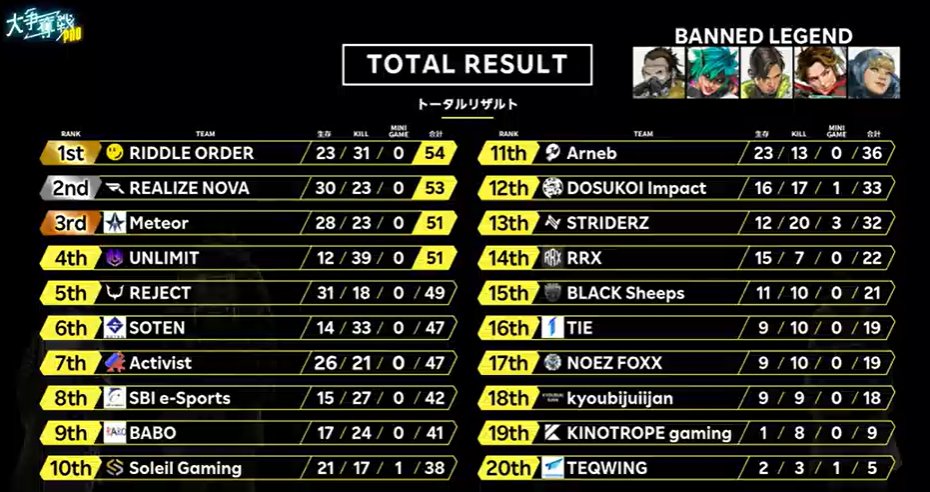 Miak選手が移籍して破壊力が増したSOTENが初戦をとるとRIDDLEが2戦目でCHAMPIONを獲得!