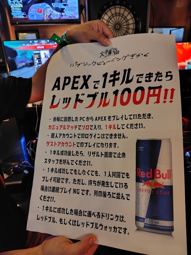 オフライン会場の近隣のHUBではパブリッシングビューイングが開催。人気ストリーマーが代わる代わる来店したこともあり、とんでもない盛り上がりと熱気!ビール飲んで、こっちで観戦したくなりました(笑)