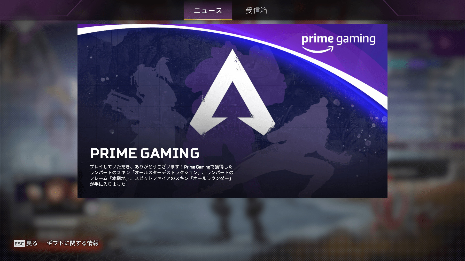 5. 後はエーペックスを起動すると限定アイテムGET!