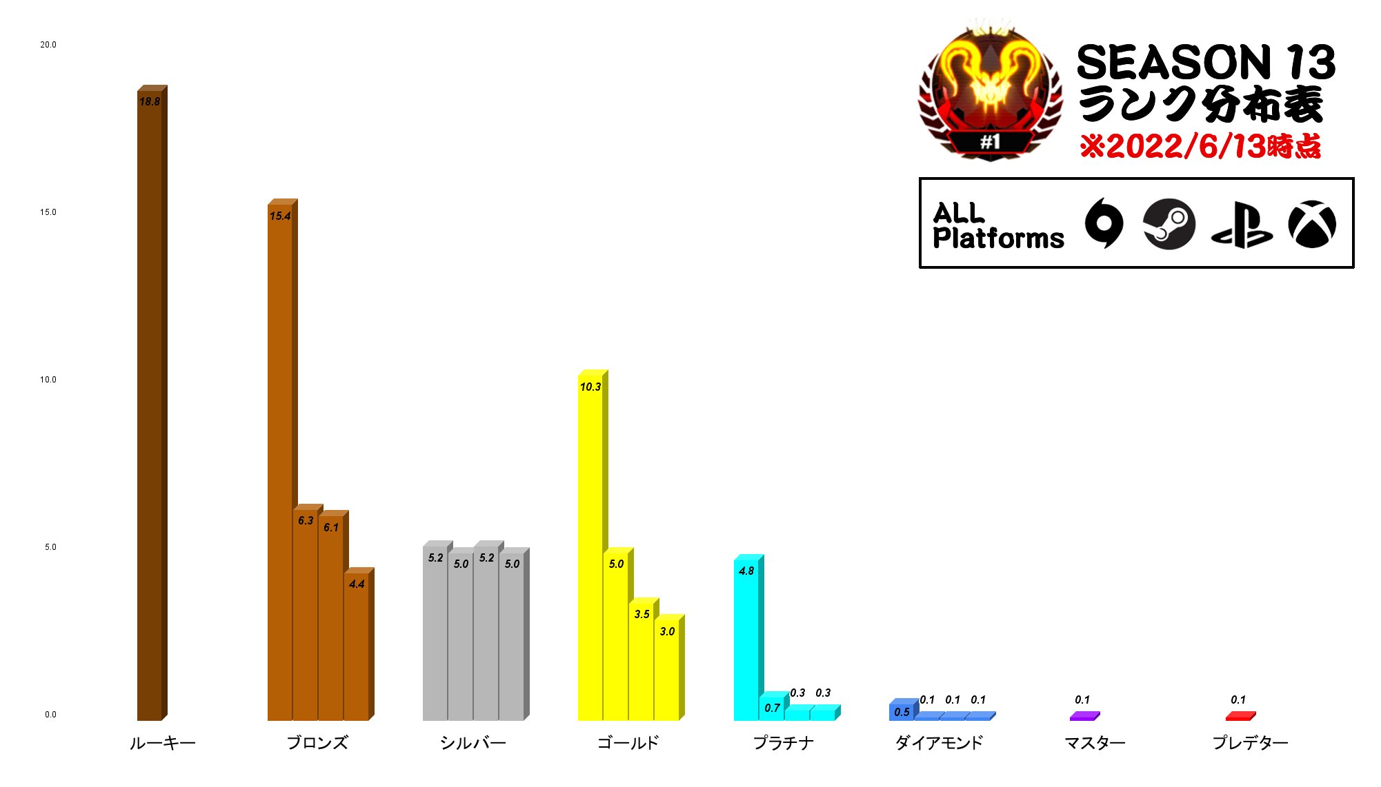プレデター:0.1%ダイヤ3以上はそれぞれ0.1%未満ですが、便宜上0.1%としています#Apex #ApexLegends pic.twitter.com/nEeWe3Ve2Z