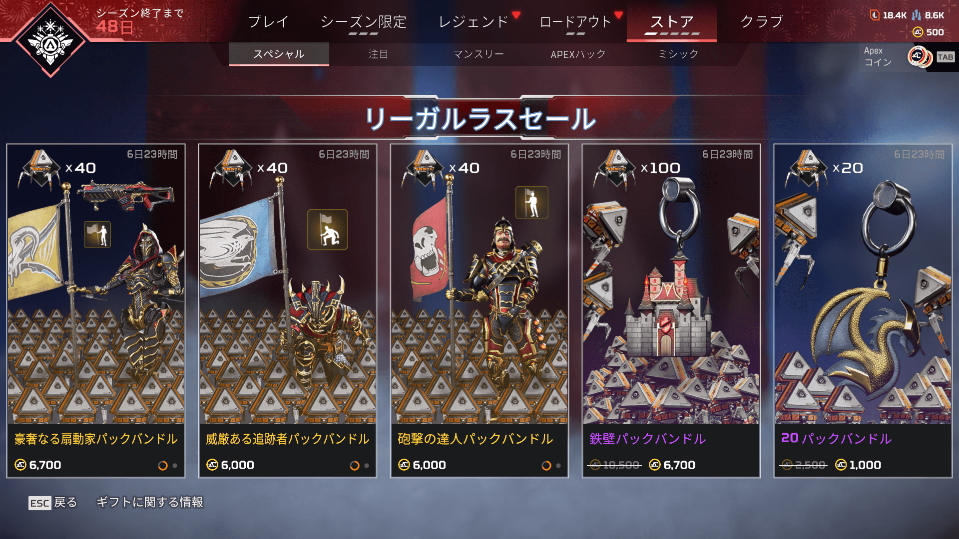 【APEXストア情報】リーガルラスセールが開催!「アッシュ」「ブラッドハウンド」「ヒューズ」の旗エモートや「お得な100パックバンドル」が登場