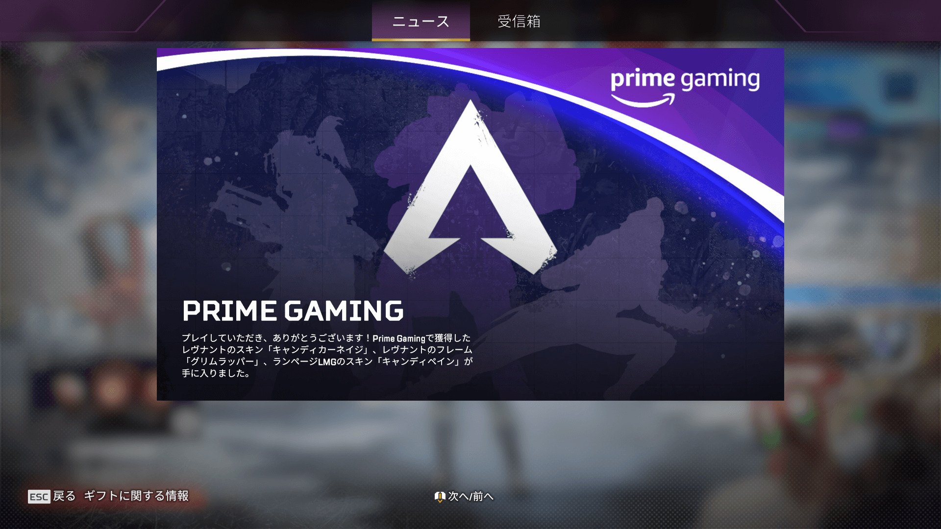 5. 後はエーペックスを起動すると限定アイテムGET!