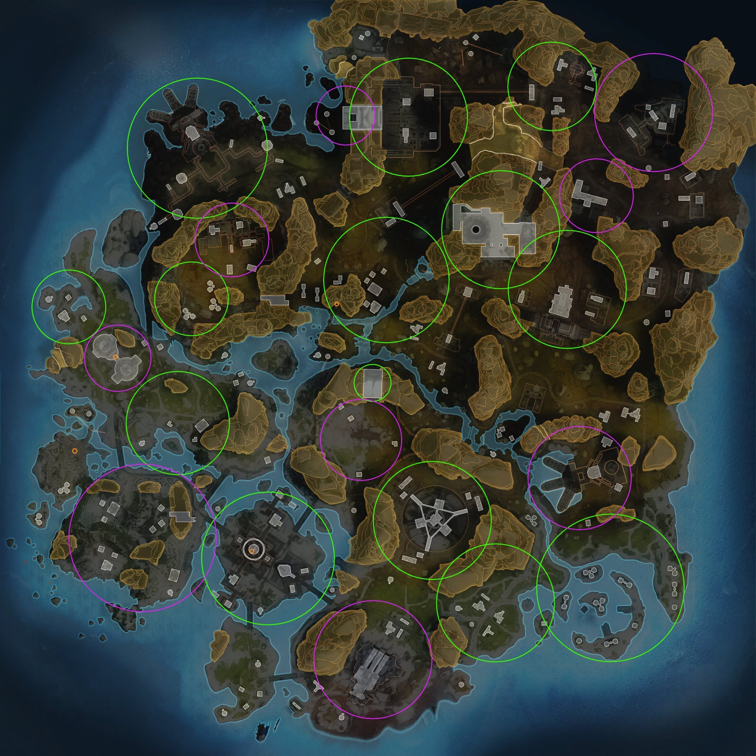 Loot Zones for the current rotation of maps. This only affects how likely higher quality weapons / armor / attachments will spawn on the floor and not the loot density.