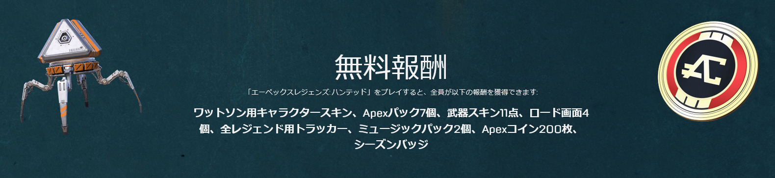「エーペックスレジェンズ: ハンテッド」をプレイすると、全員が以下の報酬を獲得できます: