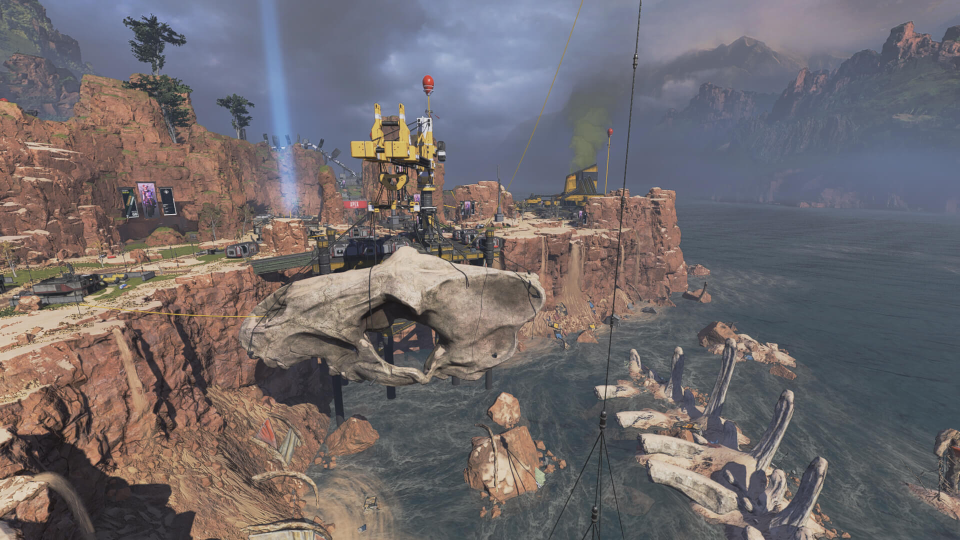 シーズン5では、ローバによる大規模な爆発により、スカルタウンとサンダードームが沈没しました。サルベージ作戦が完了した今、シンジケートはApexゲームのエリアを再建します。浚渫機によって海底の砂が埋め戻され、象徴的な頭蓋骨を中心とした新たな戦場が再建されています。中央の村の建物は連結して曲がりくねった構造となっており、レジェンドに目まぐるしくも、どこか懐かしい体験を提供するはずです。