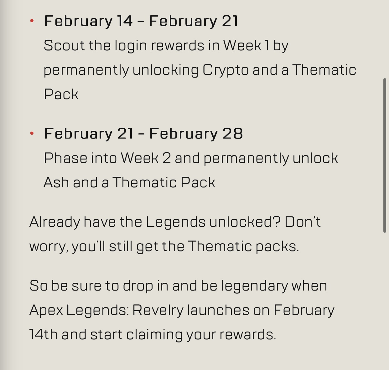 Seems they're doing the same login reward system as last year, but with Crypto and Ash this time aroundAlso confirmed S16 name: Revelry