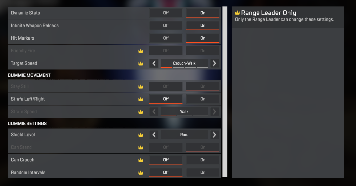 - ダミーが左右に移動できるようになりました!移動速度、しゃがみ、シールドのレベルも設定可能です。