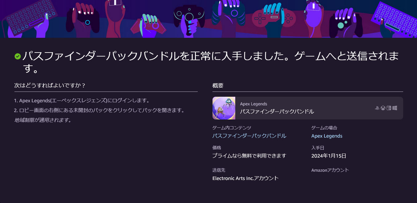 「パスファインダーパックバンドル」がAmazon Prime Gamingサイトで配布されました。