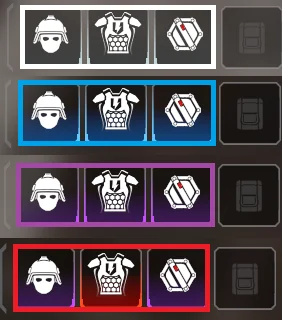 ➁アーマーはLEV3(紫)が上限に赤アーマーは赤ヘルメットを入手後に到達可