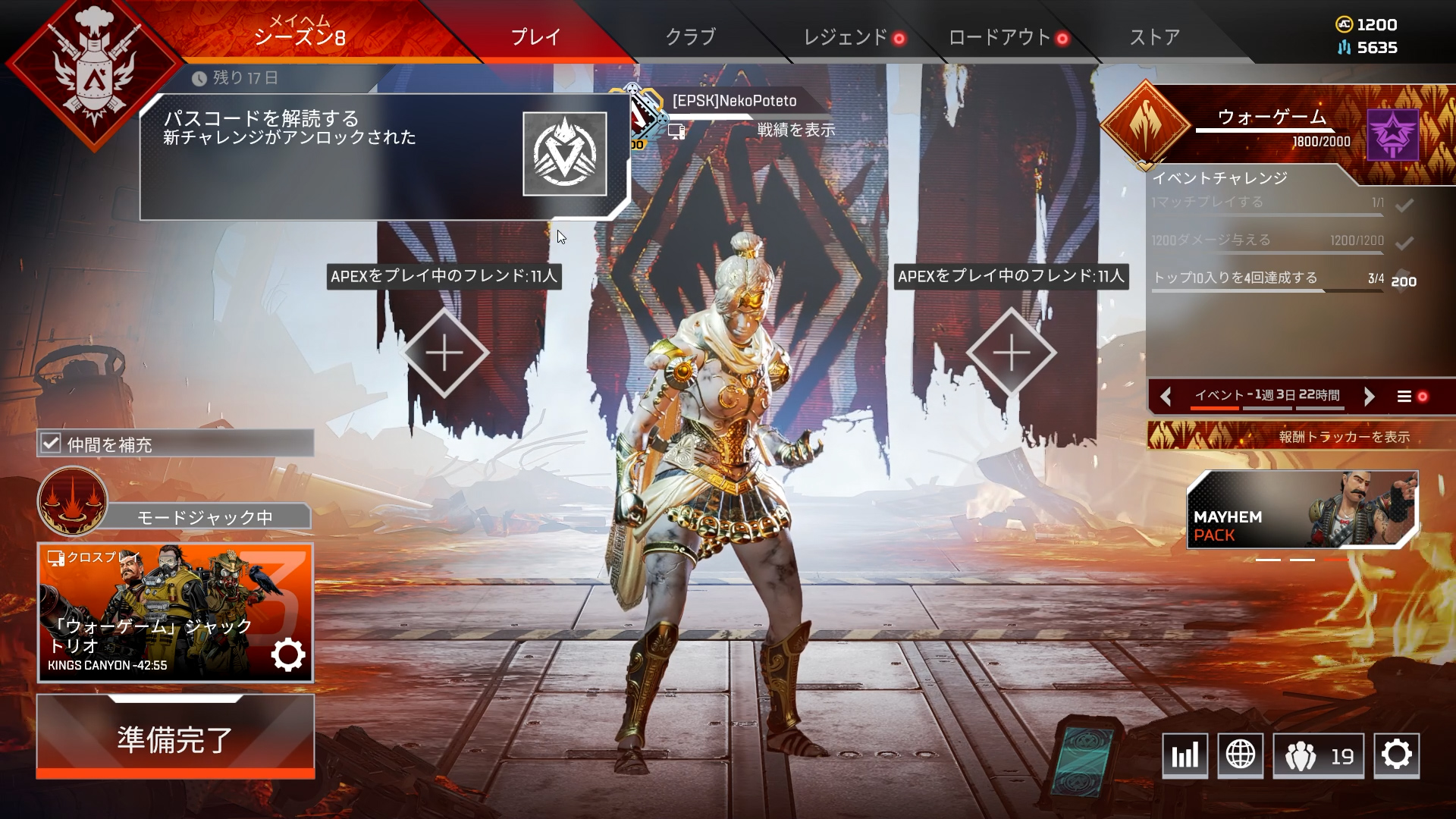 入手した後、ロビーでキーカードを選択すると「新たなチャレンジ」が開放されます。#エーペックスレジェンズ #ApexLegends pic.twitter.com/ejXADHaWHp