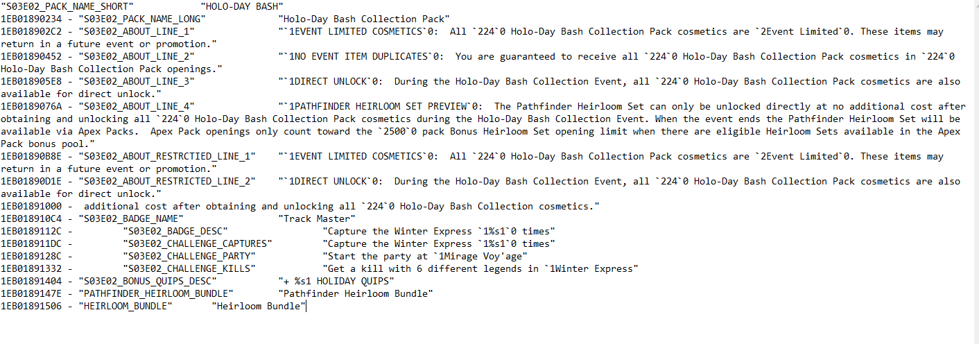 エーペックスのデータマイナーにより、次の冬イベントのゲームコードが新たにリークされました。