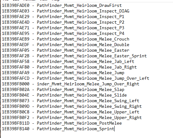 コードの下にはパスファインダーのHeirloom(クナイ枠)という文字も確認できる