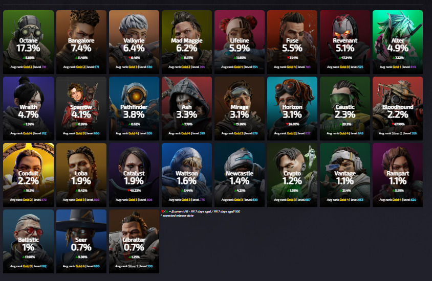 レイスとローバは、まあまあ使われているイメージでしたがジブは、気が付くとピック率最下位に。