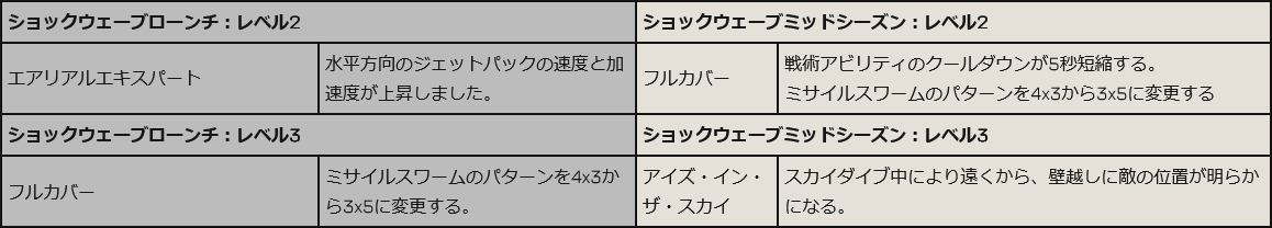 - フルカバー:レベル2に変更。戦術アビリティのクールダウン短縮を追加