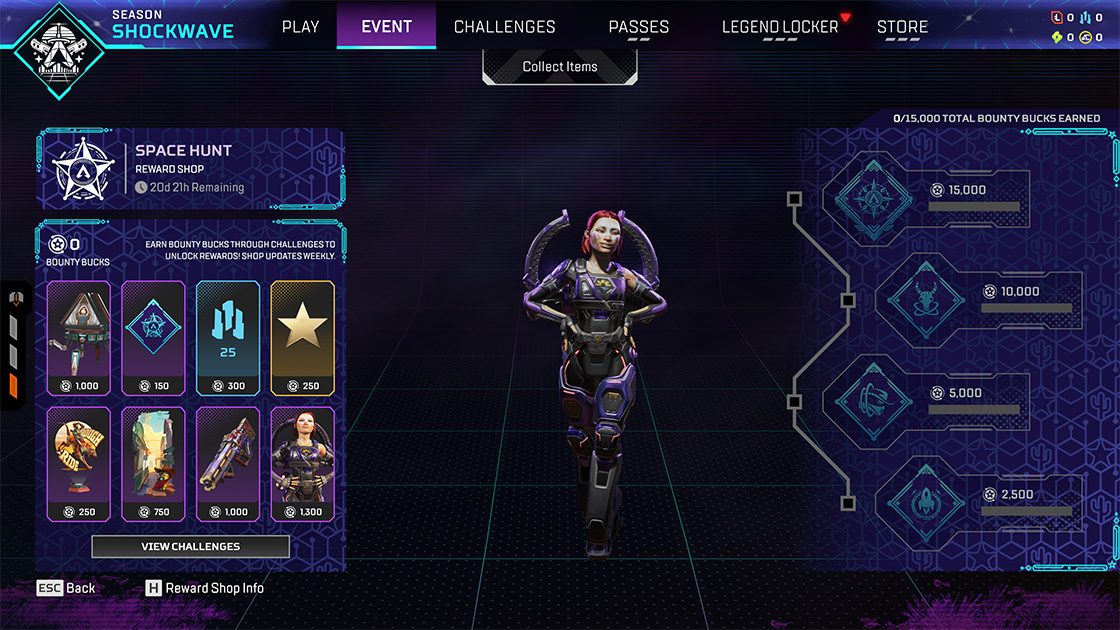 デイリーイベントチャレンジをクリアしてバウンティバックを獲得した後は、スペースハント報酬ショップで報酬を選び、イベントバッジの進行状況を確認しましょう。報酬ショップとショップの商品は、イベント期間中の2024年9月29日午前3時に入れ替わります。