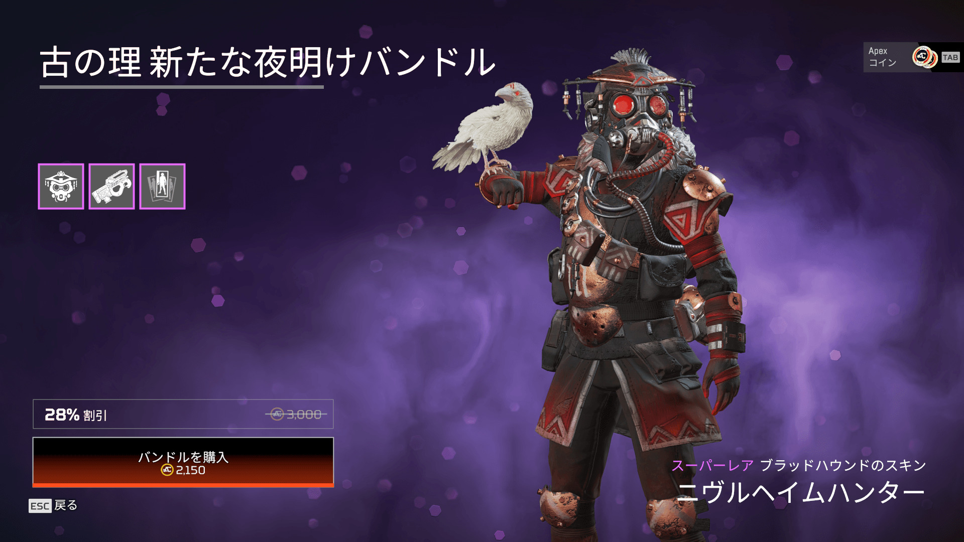 【APEXストア情報】ブラッドハウンドの「白カラス」スキンが登場!今週の色違いスキンは「ヘムロック」と「ライフライン」