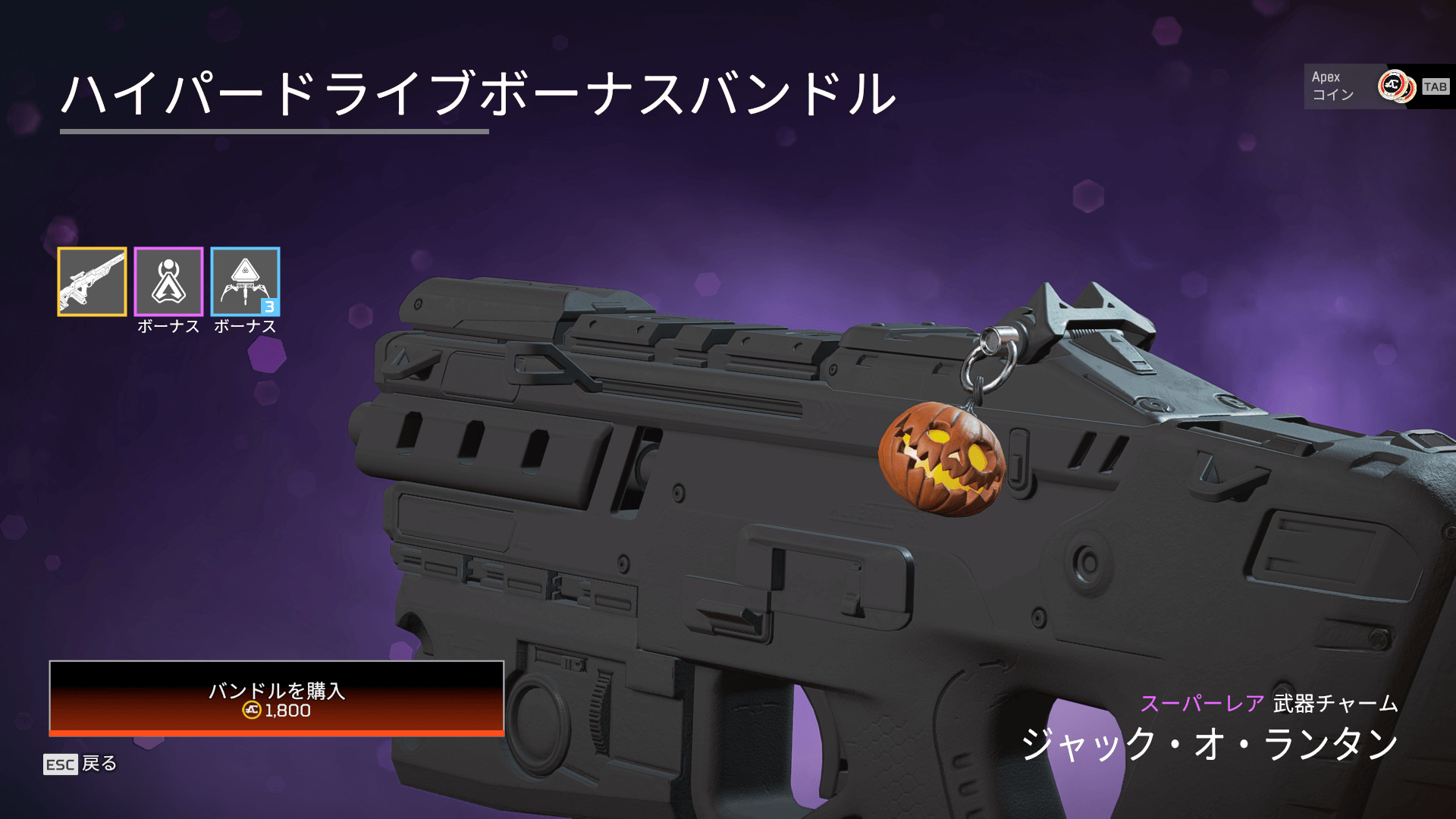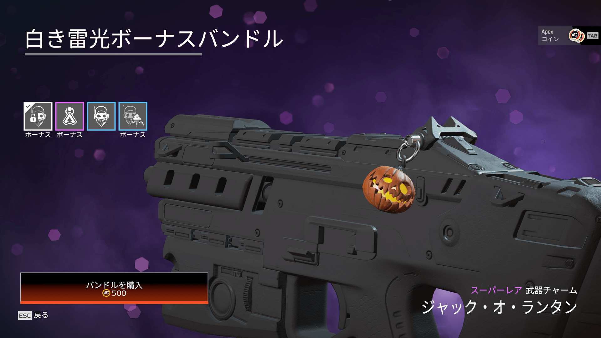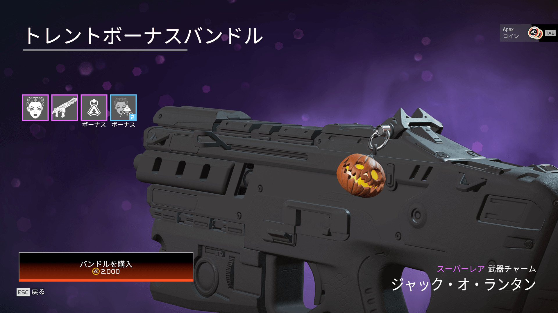 【APEXストア情報】全アイテムに「かぼちゃの武器チャーム」が付属!!色違いスキンは「ミラージュ」と「トリプルテイク」が登場