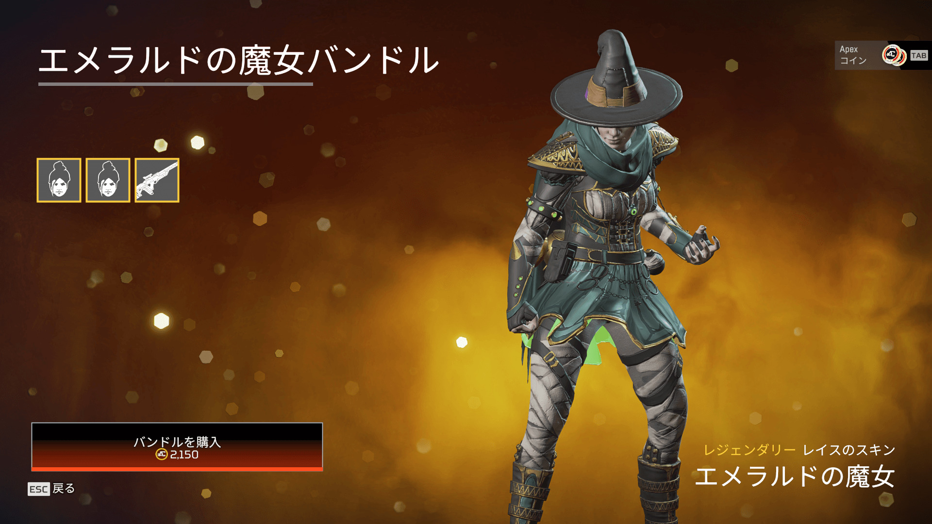 - レイスのスキン「エメラルドの魔女」