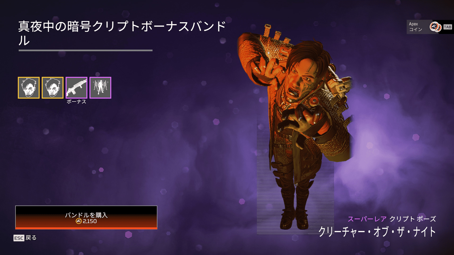 - クリプトのポーズ「クリーチャー・オブ・ザ・ナイト」