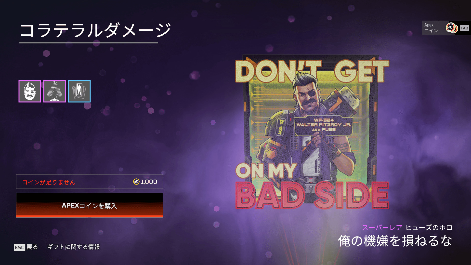 【APEXストア情報】2021年に登場した「ヒューズ」「コースティック」のALGSスキンが再販!!
