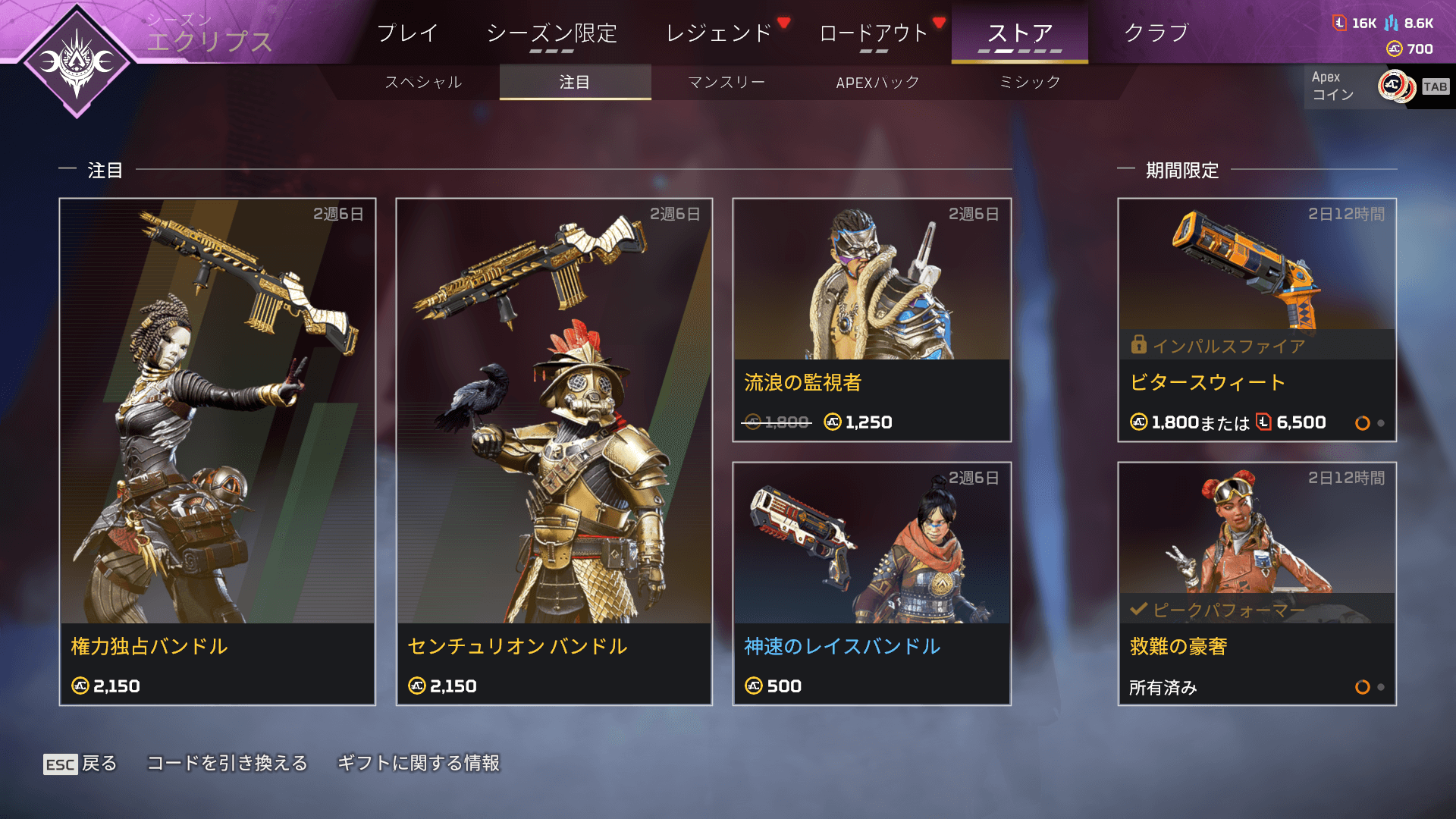 【APEXストア情報】年末セールが開幕!ワットソン「かわいいキティ」や、レイス「リフトストーカー」が再販