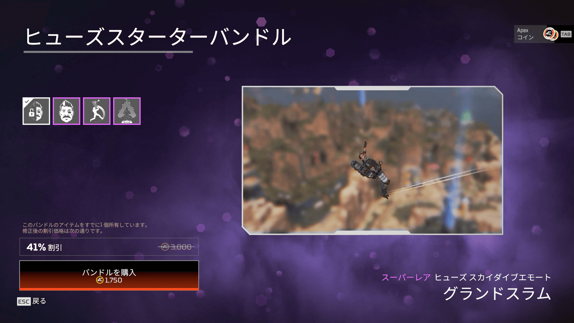 ・ヒューズのスカイダイビングエモート「グランドスラム」