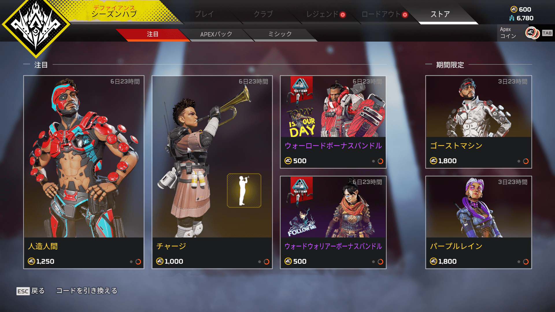 【APEXストア情報】1年前のイベントで登場した「レヴナント」のレジェンダリースキンが再販!今週は「ミラージュ」と「ローバ」の色違いが登場
