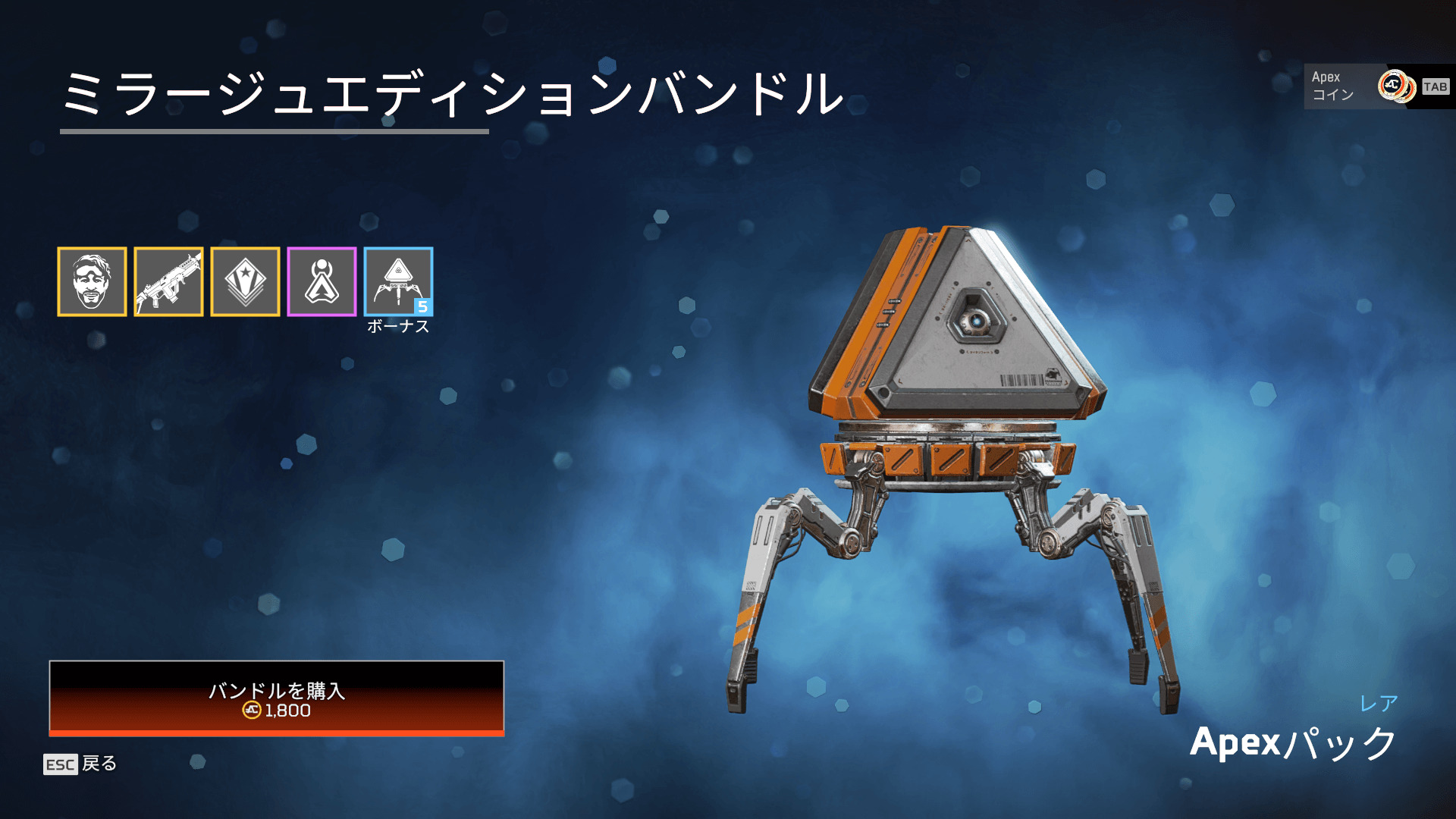 ※パスファインダー関連のレア以上のアイテムが必ず1個出現するパック