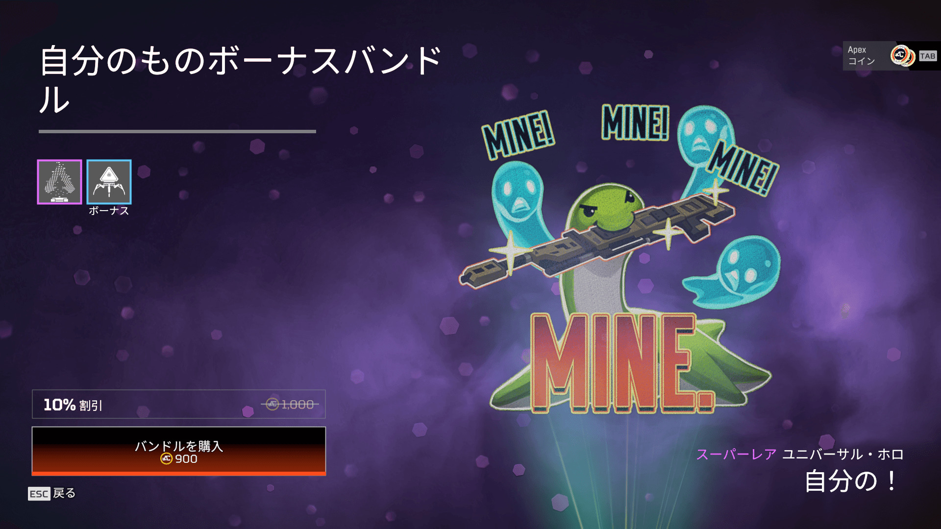 「自分のものボーナスバンドル」が1APEXパックになっています。