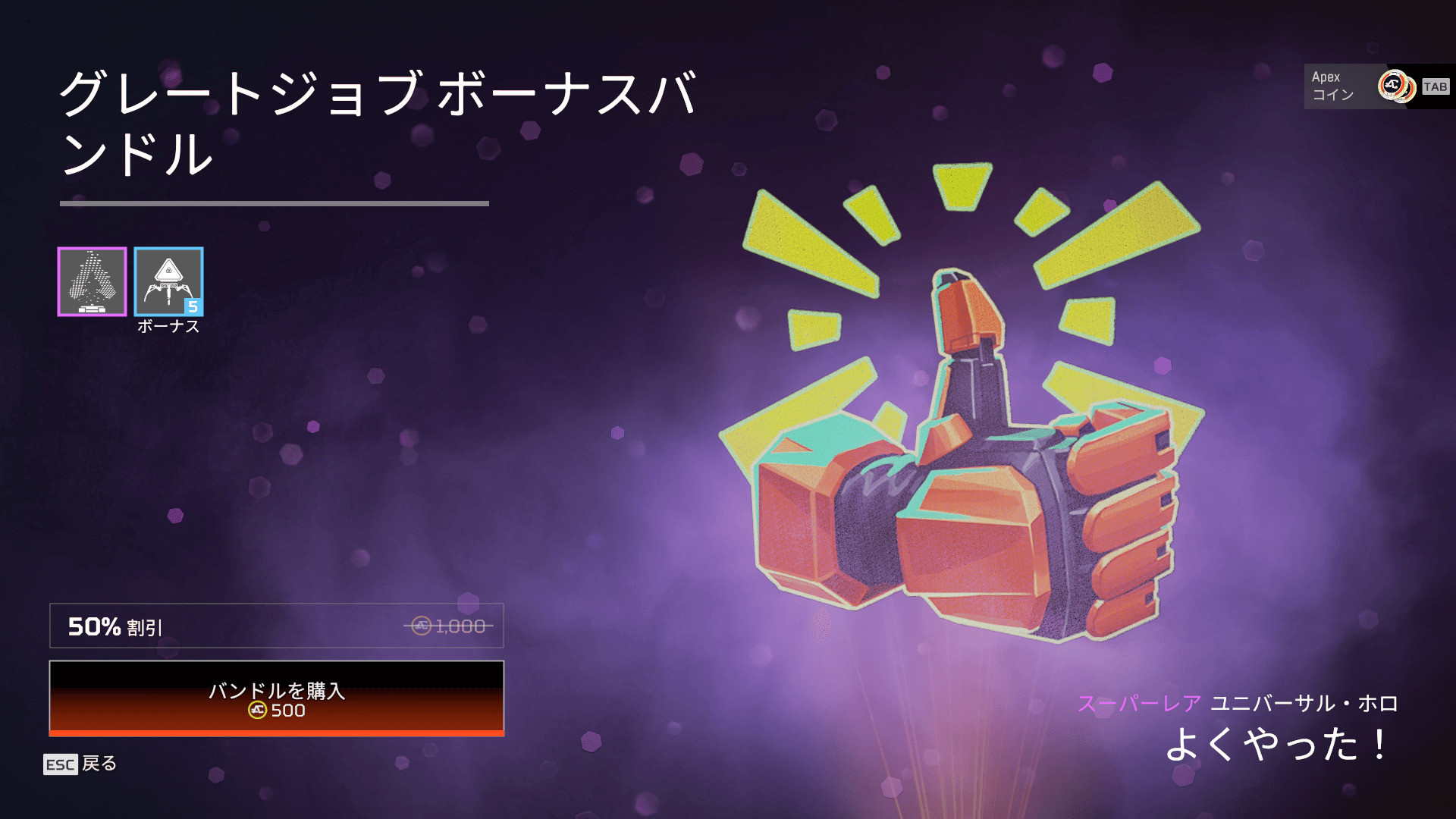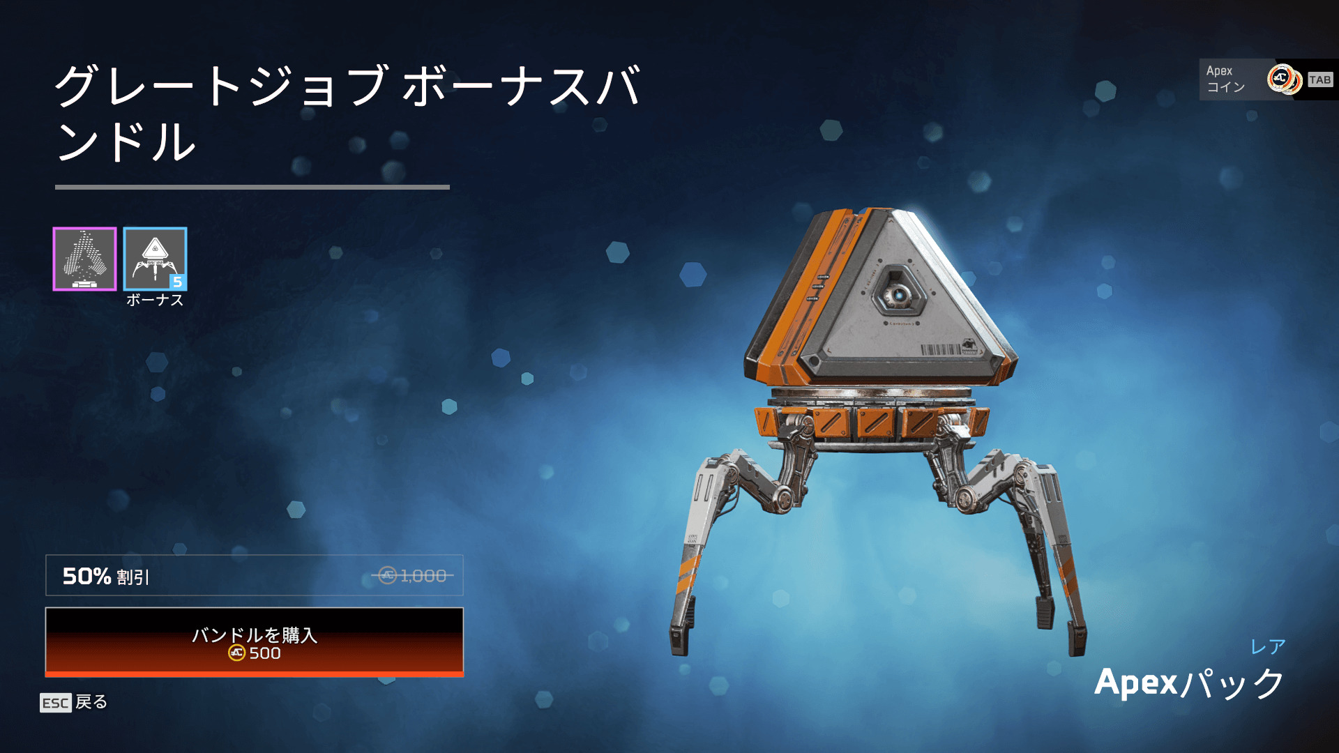 「グレートジョブ ボーナスバンドル」が5APEXパックで