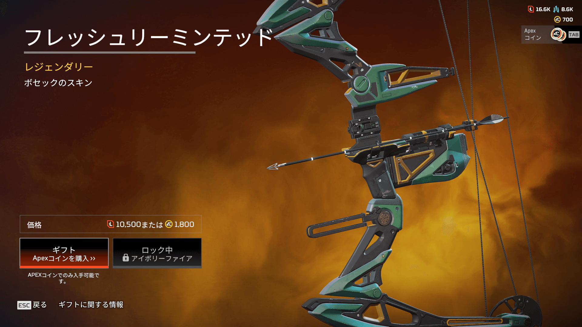【APEXストア情報】「バンガロール」と「ボセックボウ」の色違いレジェンダリースキンが登場