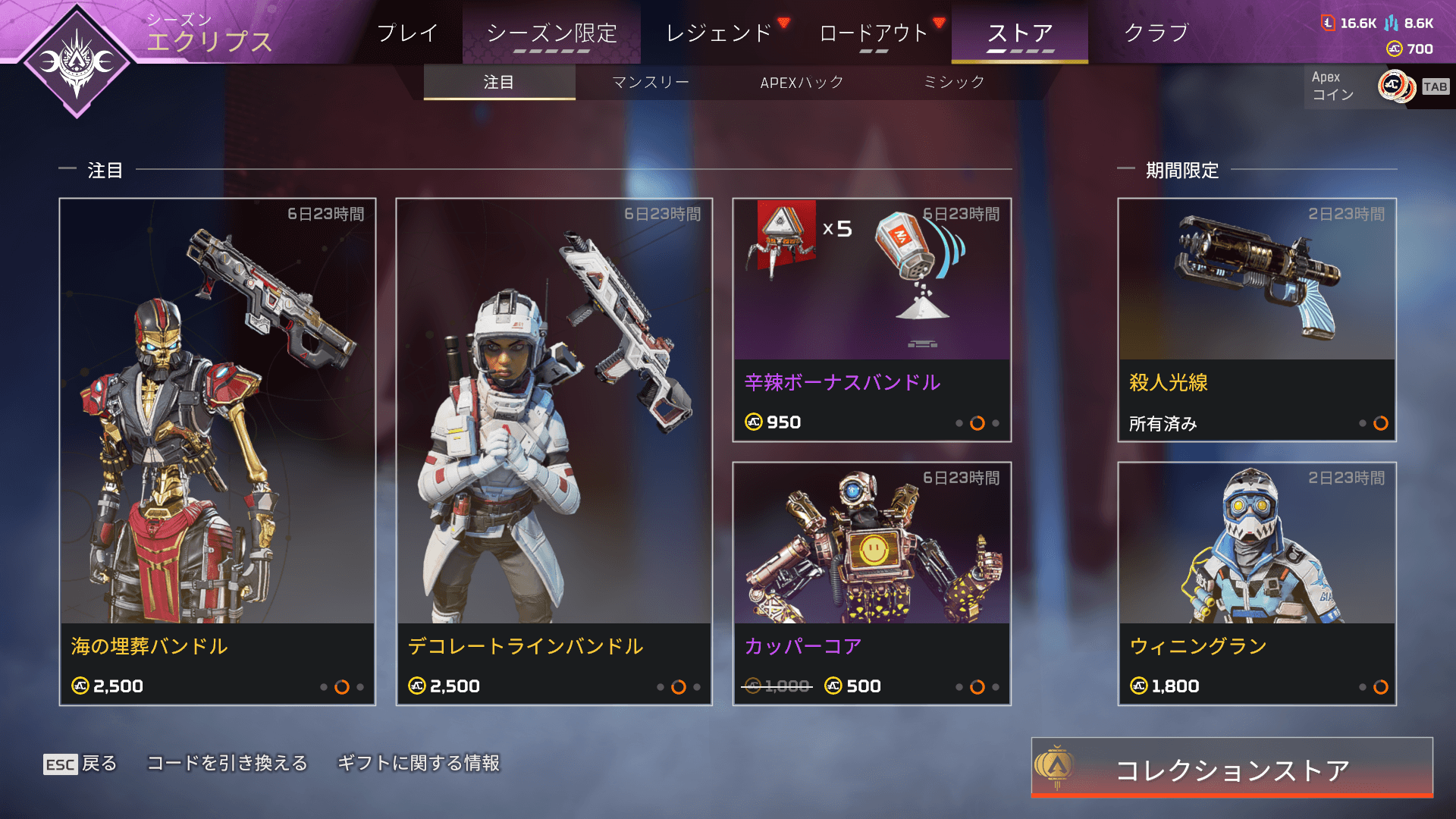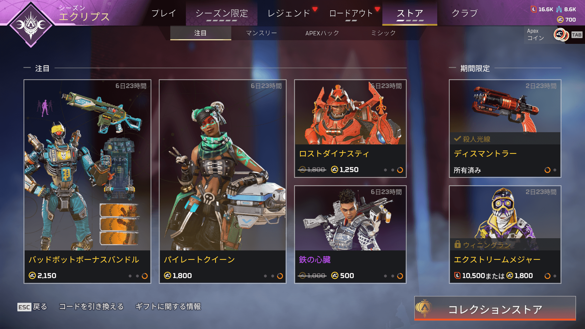 【APEXストア情報】アンシャックルイベントで登場していた「レイス」と「クリプト」のスキンが再販!色違い枠には「ウィングマン」「オクタン」が登場