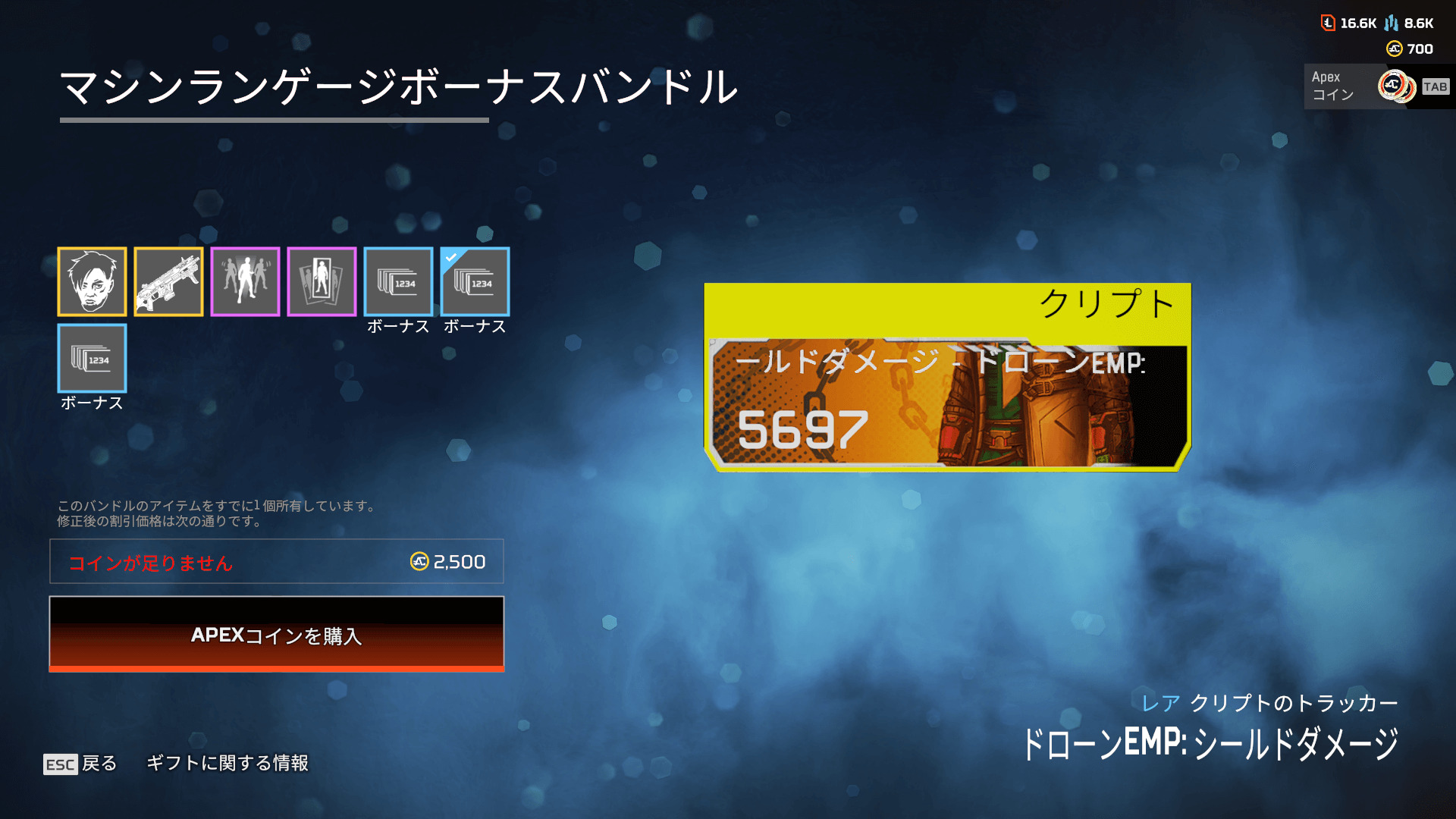 - クリプトのトラッカー「ドローンEMP: シールドダメージ」