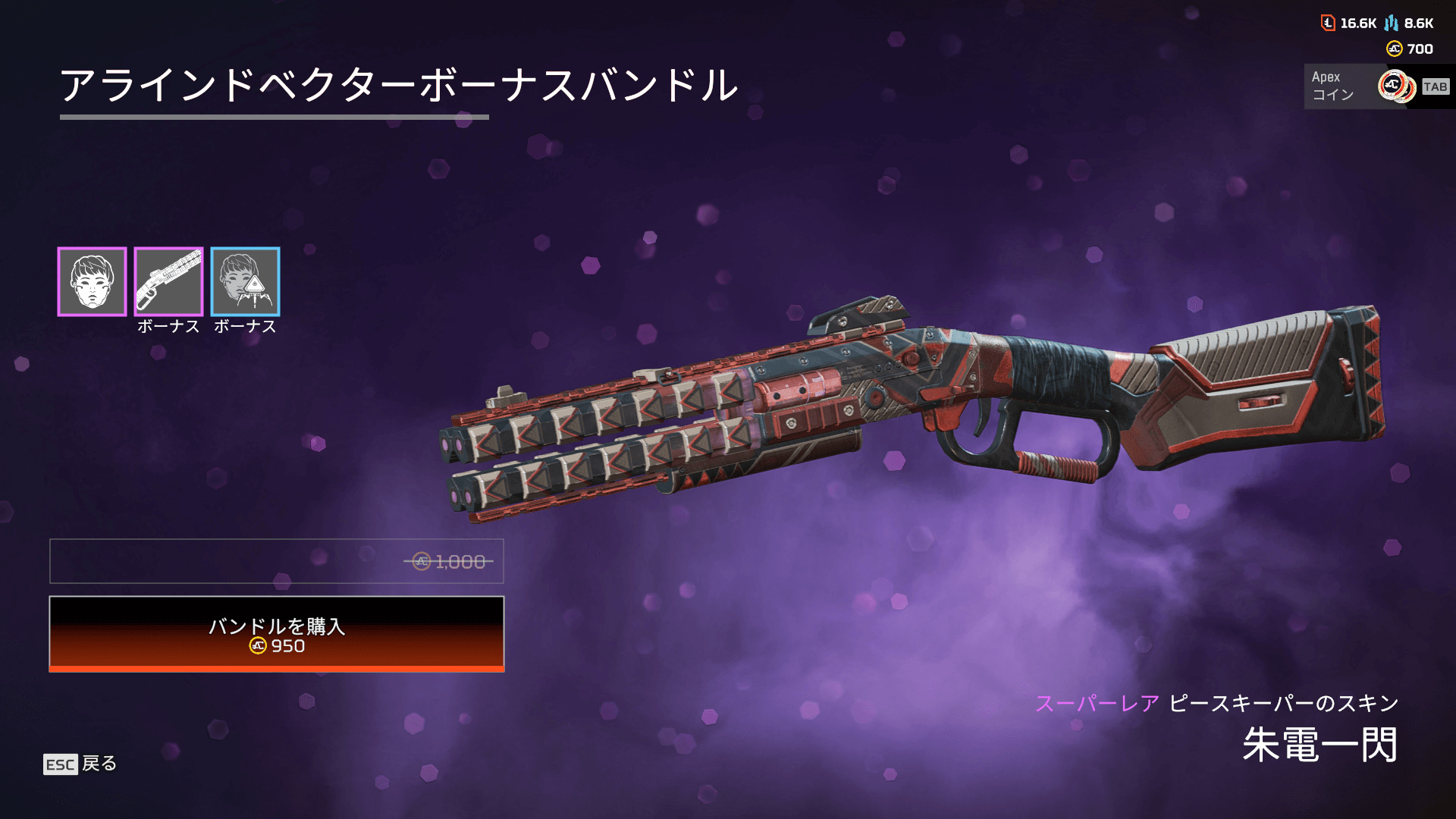 - ピースキーパーのスキン「朱電一閃」